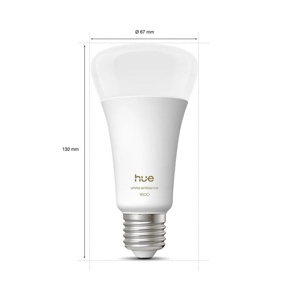 Hvidt strålende, kraftfuld 11,8 W Philips Hue E27 LED-pære White Ambiance CCT til smart integration via ZigBee eller Bluetooth