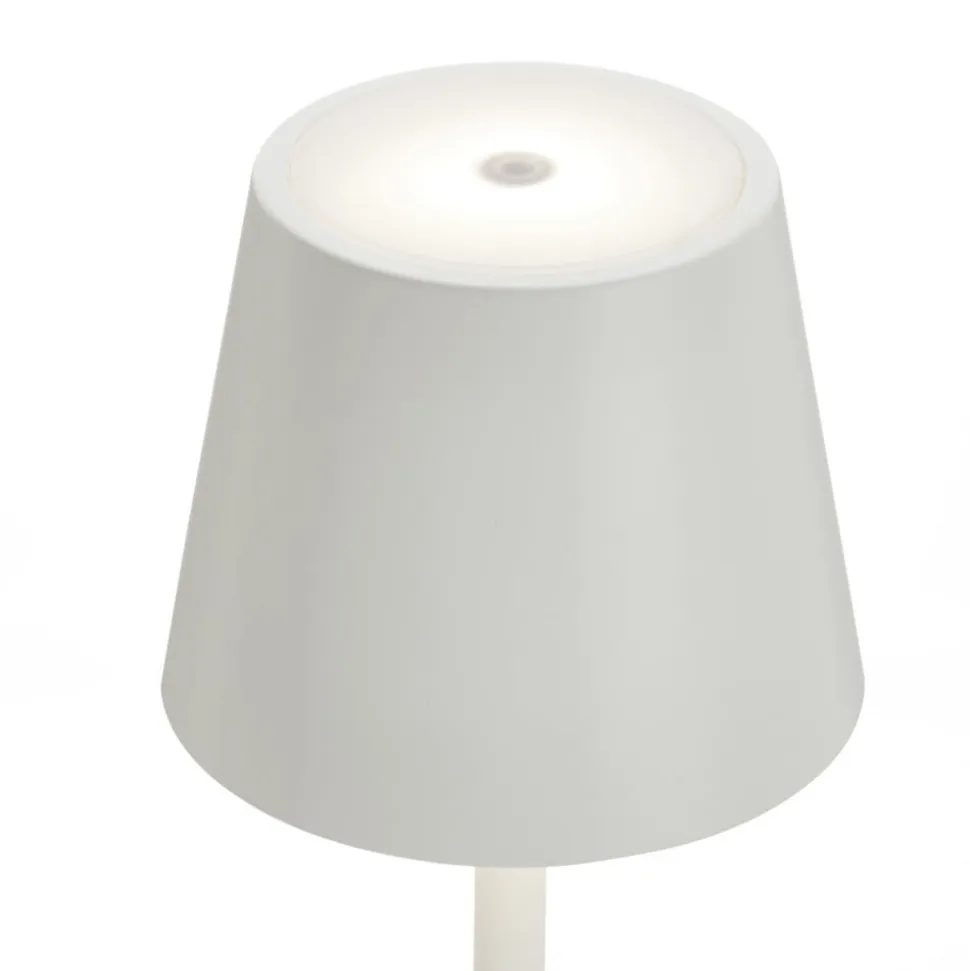 Poldina sætter lysakcenter, hvor der er brug for det, for takket være batteridrift giver den ca. 9 timers lys og kan takket være IP54-beskyttelse både indendørs og udendørs anbringes i blomsterpotter eller direkte i jorden. Opladning sker via USB-porten på undersiden af skærmen. LED’erne tændes og slukkes via touch-dæmpningskontakten på oversiden af lampen. Lysstyrken på lampen kan også reguleres efter ønske via denne kontakt, og det er muligt at skifte lysfarven mellem 2.700 K og 3.000 K.