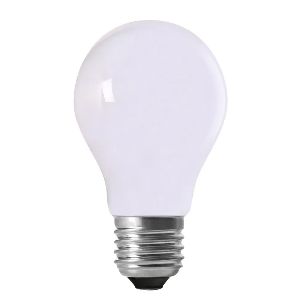 Dæmpbar E27 LED-lampe med 7 W, opal – farvetemperaturen kan ændres via lysafbryderDenne LED-pære med E27-sokkel og opalglaspære er dæmpbar og har en farvetemperatur, der kan justeres i tre trin via lysafbryderen (2.200 K, 2.700 K, 4.000 K).