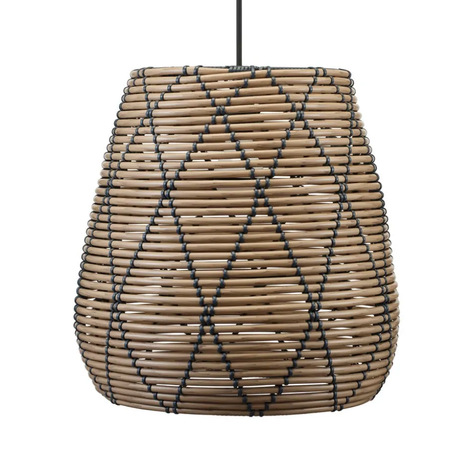 Lollo pendel til udendørs brug Den 1 lyskilde Lollo udendørs hængelampe har en rund plastskærm, der er vævet i hånden for at ligne rattan. Udstyret med stikledning, loftsbeslag medfølger ikke.