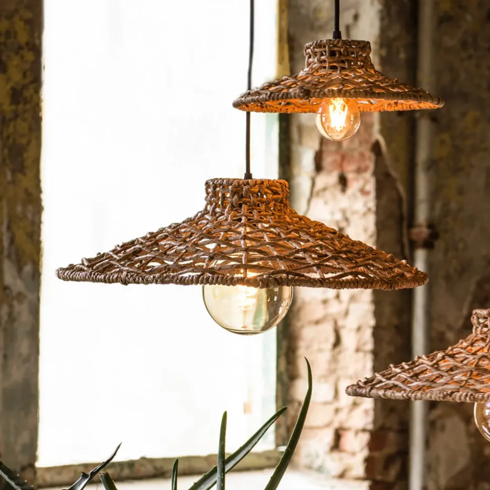 Hængelampen Sari er fremstillet af et helt specielt materiale, lampakanay. Det er en sumpplante, som vi kender som tagrør. Fibrene er meget stærke og holdbare, et optimalt flettemateriale. Og det kan man også se på denne specielle hængelampe. Få ren natur ind i dit hjem! Skærmen filtrerer lyset og skaber et smukt skuespil af skygger. Lampen passer perfekt i vinterhaven eller indendørs og skaber en jordnær atmosfære. Det sorte plastkabel har en længde på ca. 1,2 m. Pendellampen har en E27-fatning. Vejr og UV-lys kan påvirke lampens udseende