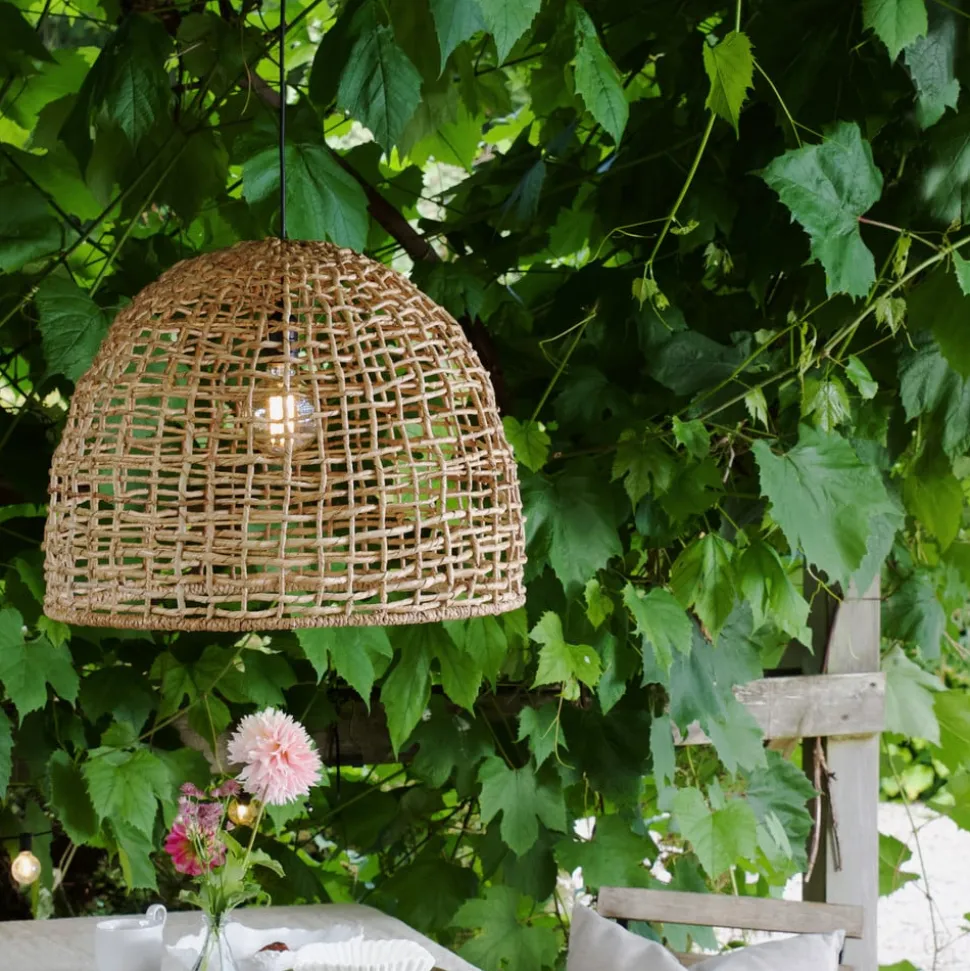 Robust Cebu udendørs hængelampe med stik Cebu-pendlen er lavet af et meget specielt materiale, lampakanay. Det er en sumpplante, som vi kender som skvalderkål. Fibrene er meget stærke og holdbare, et ideelt vævemateriale. Og det kan du se med denne specielle hængelampe – bring ren natur ind i dit hjem! Lampen passer fantastisk i udestuen eller på terrassen og skaber en jordnær stemning. Det sorte kabel er ca. 2,5 meter langt, har et stik og er egnet til udendørs brug. Pendellampen har en E27-fatning. Vejr og UV-lys kan påvirke lampens udseende.