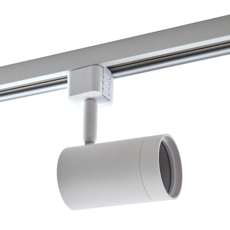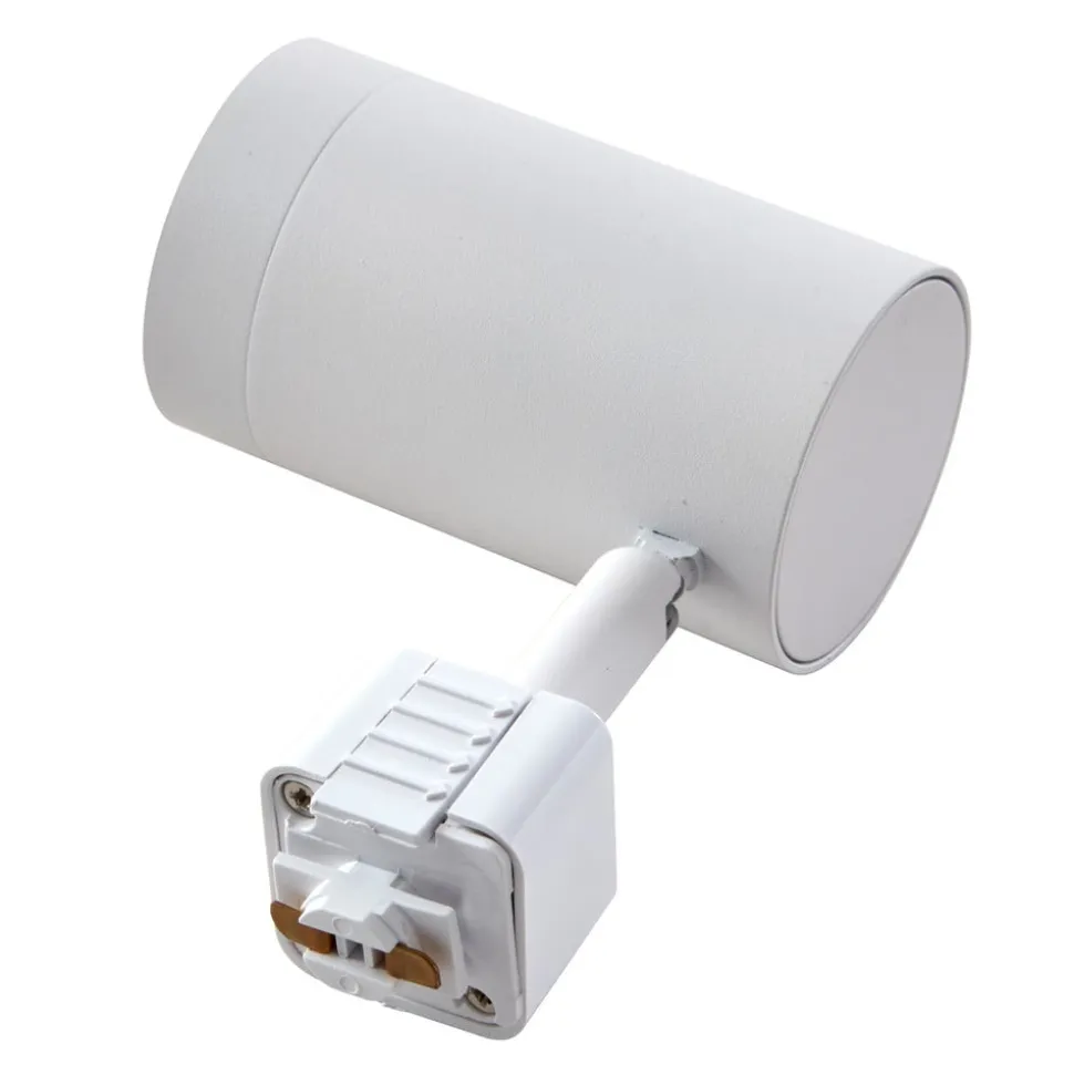 Jorell komplet 3 lyskilder skinnesystem med hvidt spotlight Dette kompakte skinnesystem kan bruges enkeltvis eller i forlængelse af hinanden. Det har en 1 meter lang 1-faset skinne og er udstyret med tre cylindriske spotlights, der kan justeres efter behov. Disse kan udstyres med reflektorpærer efter eget valg. Der er lamper med en bredere eller smallere udstrålingsvinkel, alt efter om man ønsker en målrettet og punktformet belysning eller ønsker at oplyse rummet over et større område. Den hvide farve ser tidløs ud, og det samme gør spotlightenes cylindriske form. Skinnesystemet kan enten bruges i et privat miljø eller til kommerciel butiksbelysning. Den har en strømforsyning og en endestop, så den er klar til brug med det samme.