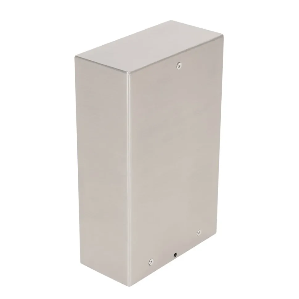 Foranda energisøjle i rustfrit stål med fire stikkontakter, praktisk til udendørs brug