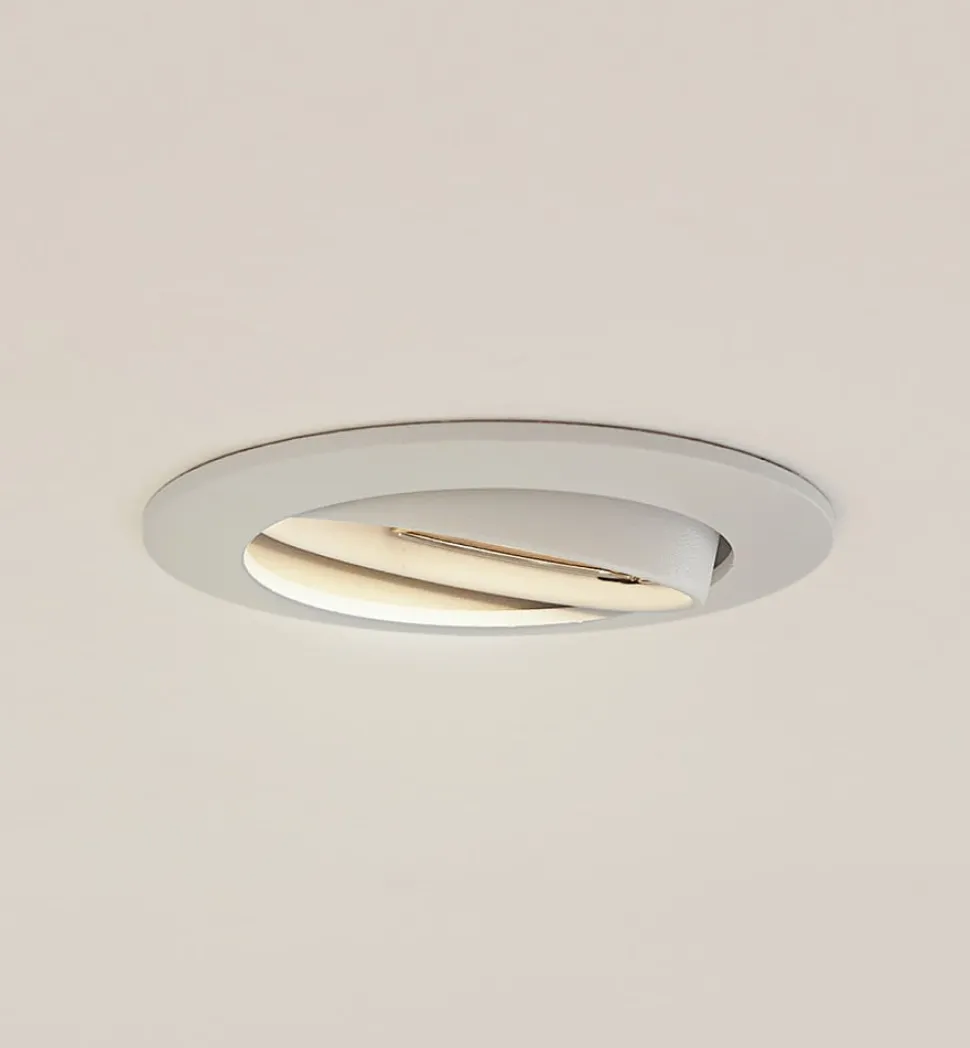 Prios forsænket loftlampe Fibur, hvid, aluminium, Ø 8,2 cm