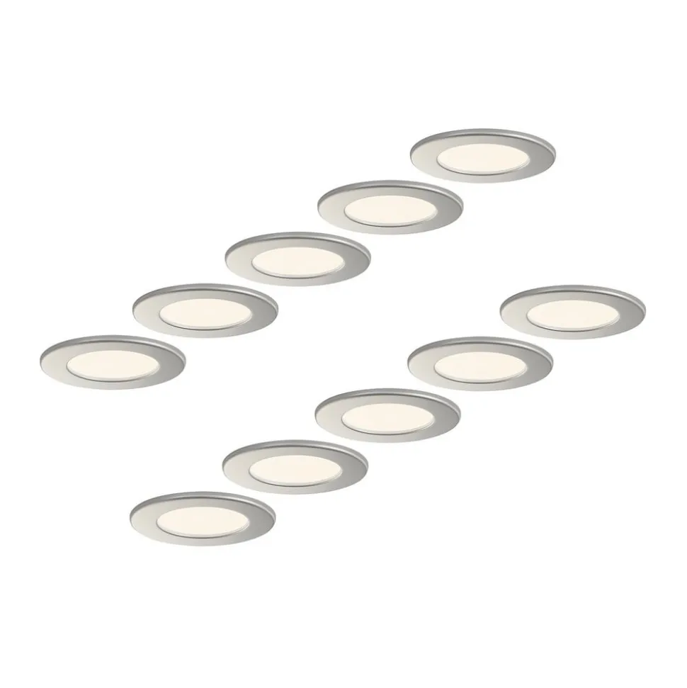 Prios LED-indbygningslampe Cadance, sølv, 12 cm, sæt med 10, CCT