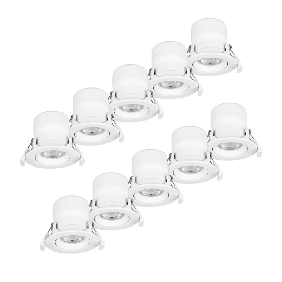 Prios LED indbygningslampe Shima, hvid, 7W, 3000K, 10stk, dæmpbar