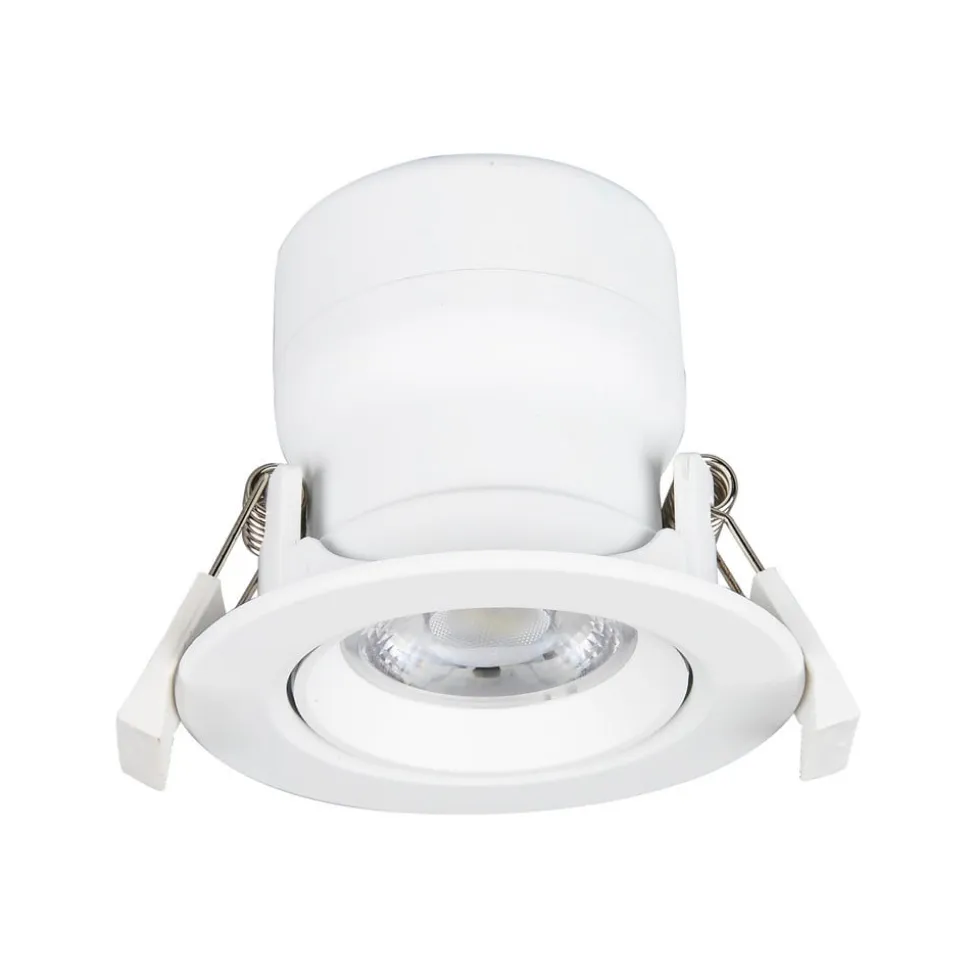 Rund indbygningslampe Shima i hvid, velegnet til mange formål og dæmpbar – leveres i et praktisk sæt med 10 Shima er et indbygningsspot med LED, der imponerer med sit enkle og moderne design og er velegnet til mange miljøer, hvad enten det er kommercielt eller privat. De permanent installerede LED’er i indbygningslampen giver et varmhvidt lys, som også kan bruges godt i et hyggeligt miljø. Med en udstrålingsvinkel på 38° er lyset centreret og spotformet, hvilket gør Shima ideel til målrettet belysning af objekter eller mindre områder. Den hvide overflade fremstår særlig tidløs og kan derfor nemt integreres i mange stilarter. Hvis det ønskes, kan lysstyrken på LED’erne justeres via en ekstern dæmper, så belysningen kan tilpasses harmonisk – Installationsdiameter: 6,8 cm til 7,5 cm