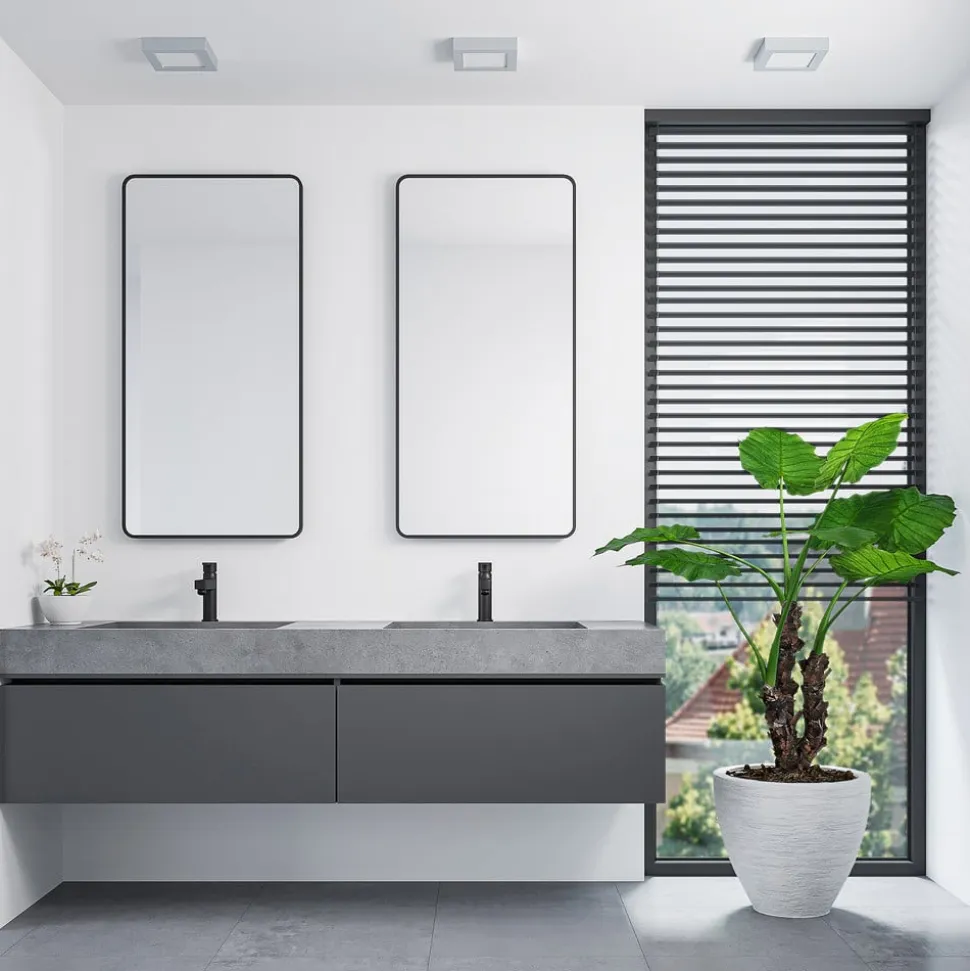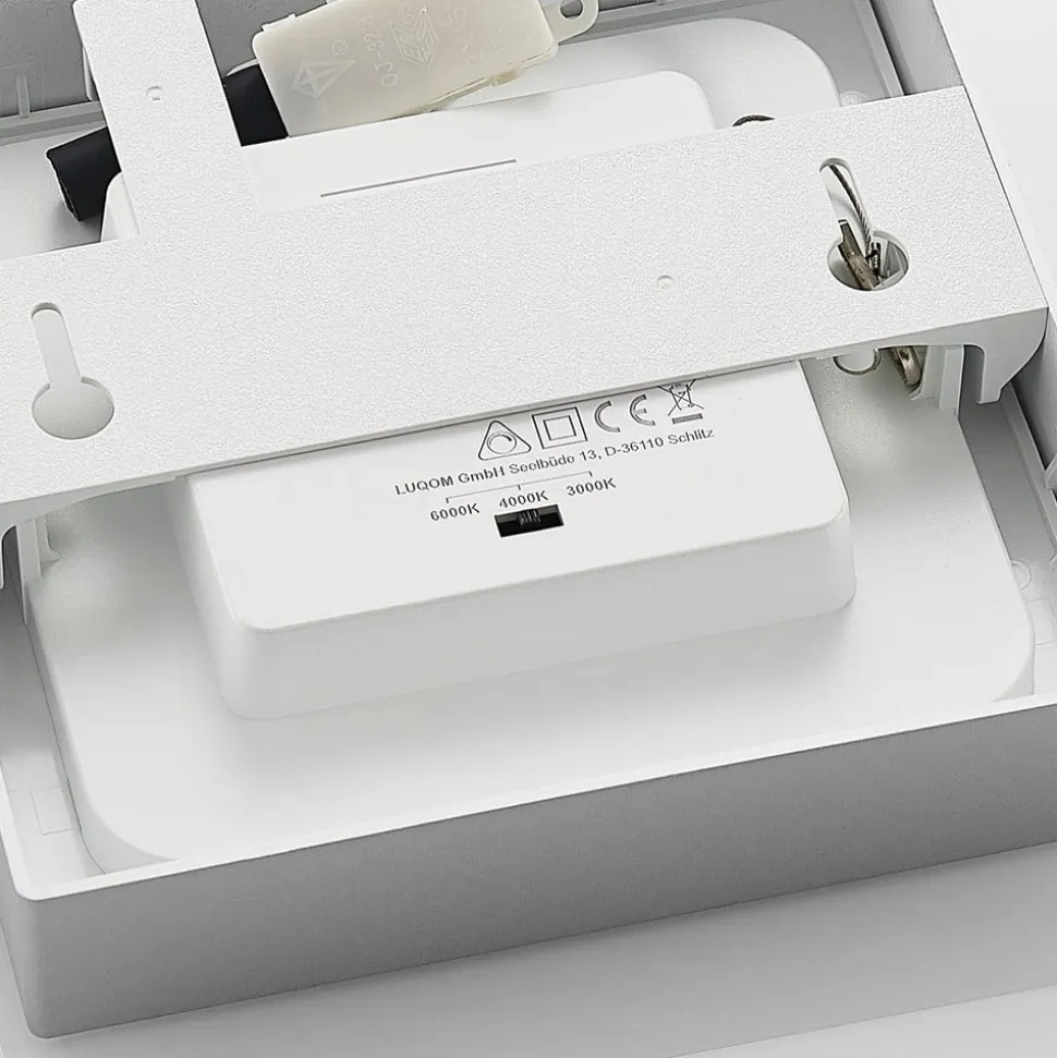 Sølvfarvet indrammet LED-fugttæt loftslampe Alette med forudindstillelig lysfarve, dæmpbar Alette er en lyskilde, der med sit enkle og relativt tidløse design kan bruges i en lang række miljøer. Grundformen er kvadratisk, og huset er malet i sølv. Derudover betyder IP44-beskyttelsesgraden, at den også kan bruges i badeværelser uden tøven, og lysfarven kan indstilles ved hjælp af DIP-kontakten – placeret på huset – som kan indstilles til tre positioner før installationen. For at fuldende udvalget af funktioner kan LED-lysets lysstyrke justeres eksternt. Med sine egenskaber kan den vinklede loftslampe bruges både til privat brug og i kommercielle miljøer. – Lysstyrken kan justeres med en ekstern lysdæmper – IP44, til fugtige rum – DIP-kontakt til valg af lysfarve før installation