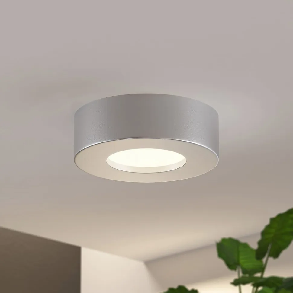 Prios LED-loftlampe Edwina, sølv, 12 cm, sæt med 3 stk