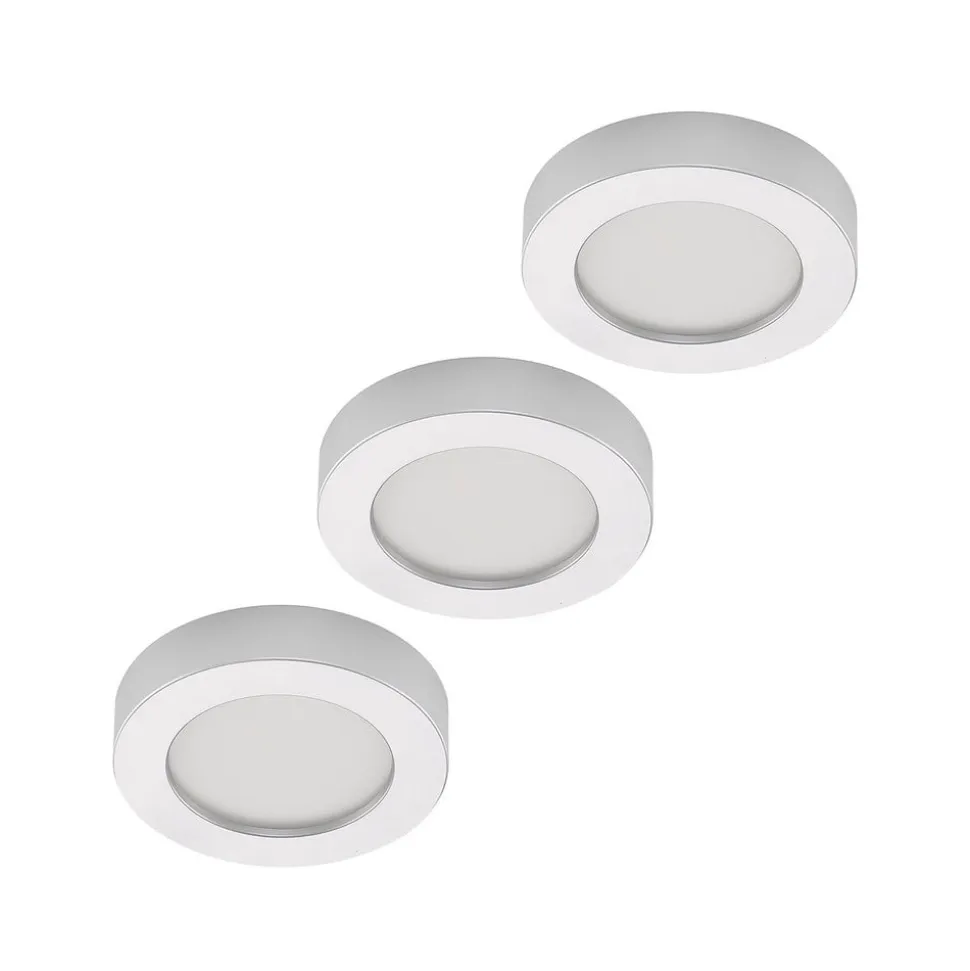 Prios LED-loftlampe Edwina, sølv, 18 cm, sæt med 3 stk