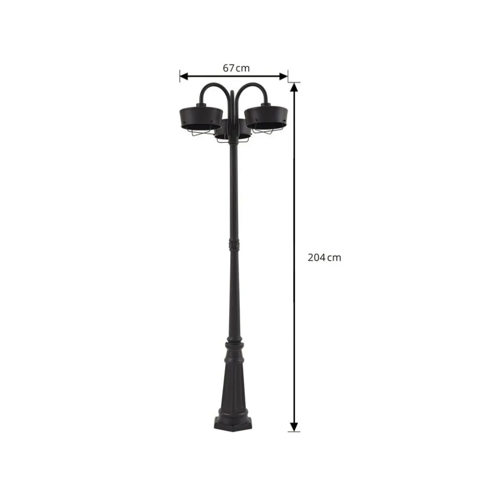 Prios LED-udendørslampe Thorus, 204 cm, sort, 3 lyskilder, IP44