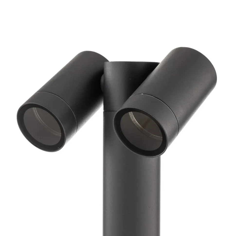 Tulimar spot med jordspyd er yderst praktisk til udendørs brug. Med sine to spots, der kan bevæges uafhængigt af hinanden, kan den belyse indgangsområdet eller havegangen optimalt. Takket være kapslingsgrad IP65 kan denne spotlight bruges langvarigt og pålideligt udendørs. Den mørkegrå overfladefinish passer godt ind i forskellige omgivelser uden at vække opmærksomhed.