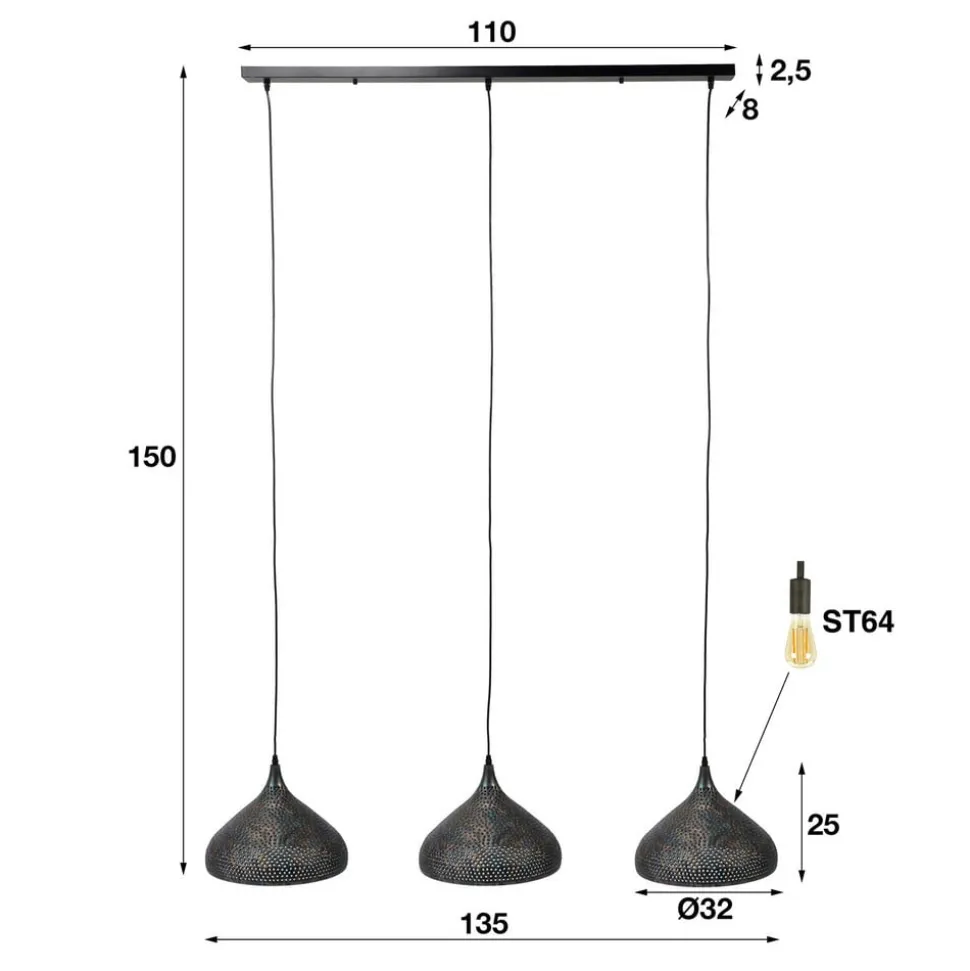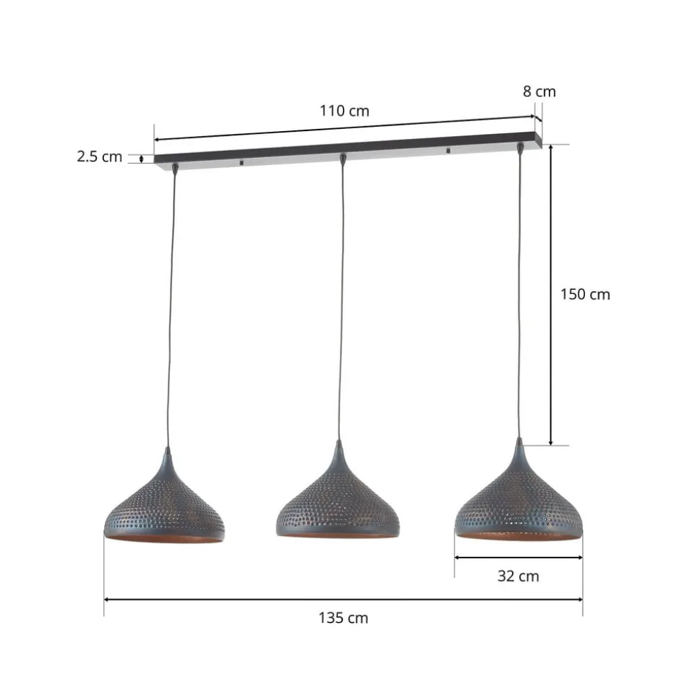 Punchray pendel med tre lys, tragtformet