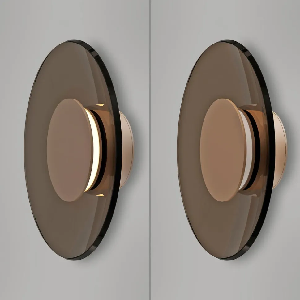 PURE LED-væglampe Moon, bronze, Ø 32 cm, glas/aluminium