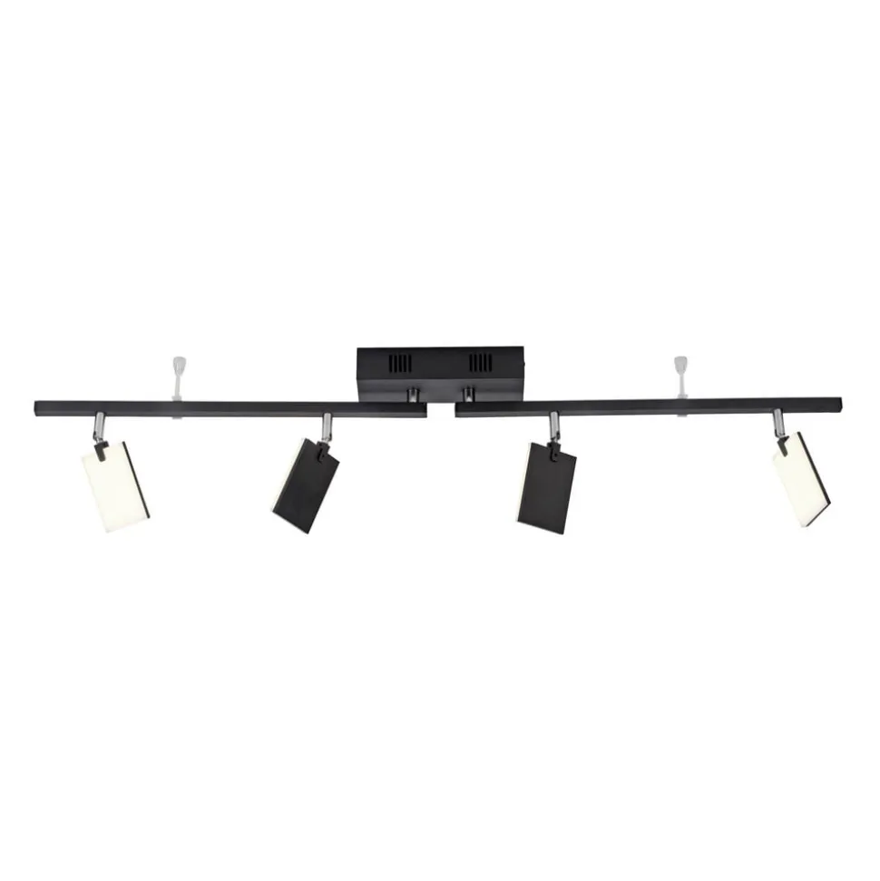 PURE Mira LED-loftslampe med fire justerbare lyselementer, lysstyrke og farvetemperatur kan justeres via fjernbetjeningen Mira LED-loftslampen beriger moderne stuer og lounges med passende lys og moderne design. To horisontalt drejelige arme, hver udstyret med to firkantede lyspaneler, er monteret under den rektangulære loftskasse. Takket være deres evne til at rotere og dreje giver disse yderligere muligheder for at justere justeringen. På den ene side af hvert af lyselementerne er der monteret en LED-plade bag et satineret akryldæksel. Både lysudbyttet og farvetemperaturen kan reguleres med den medfølgende fjernbetjening. Den aktuelle indstilling gemmes, når lyset slukkes, og er tilgængelig igen, når det tændes (hukommelsesfunktion).