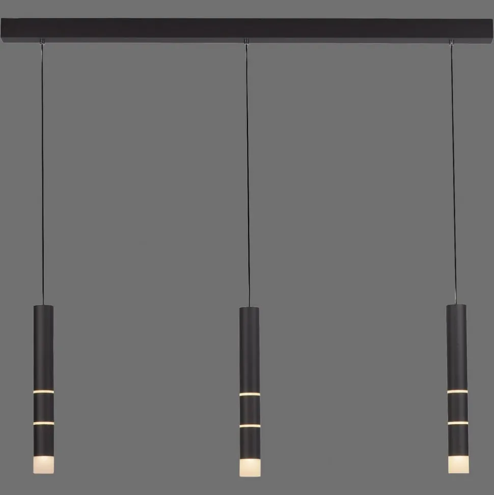 Vega LED pendelarmaturet kombinerer et minimalistisk, moderne ydre med en atmosfærisk, variabel lyseffekt. Skærmene, der er placeret i en række, er fremstillet af aluminium i cylindrisk form og er hver især opdelt i tre sektioner. Smalle ringe af satinakryl er synlige ved de to forbindelser. Toppen og bunden af cylinderne er også lukket med akryldæksler, bag hvilke der er integreret en LED-lyskilde. Dette giver varm hvid, behageligt diffus direkte belysning nedad, ambient lys til siderne og indirekte belysning hen over loftet. Oplys, sidelys og nedlys kan tændes og slukkes individuelt ved at dreje på cylindernes centrale elementer. Når der slukkes helt via den eksterne lyskontakt, gemmes den sidst valgte kombination af brændepunkter og aktiveres igen, når der tændes igen (hukommelsesfunktion).