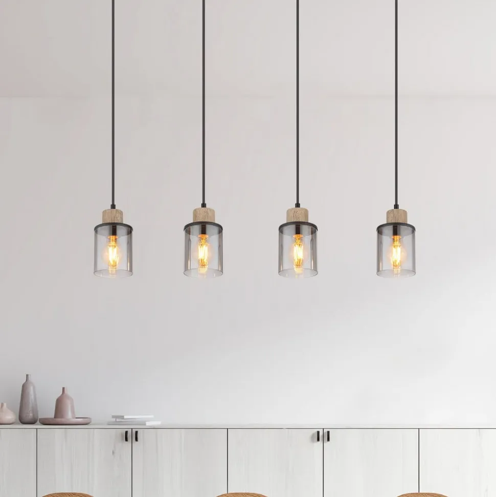 Reid pendellampe, 4 lyskilder, sort/røg