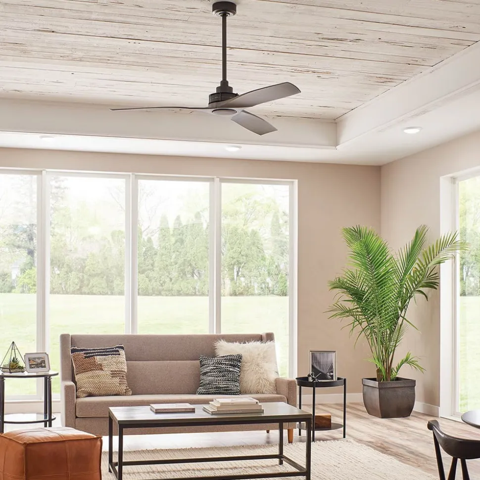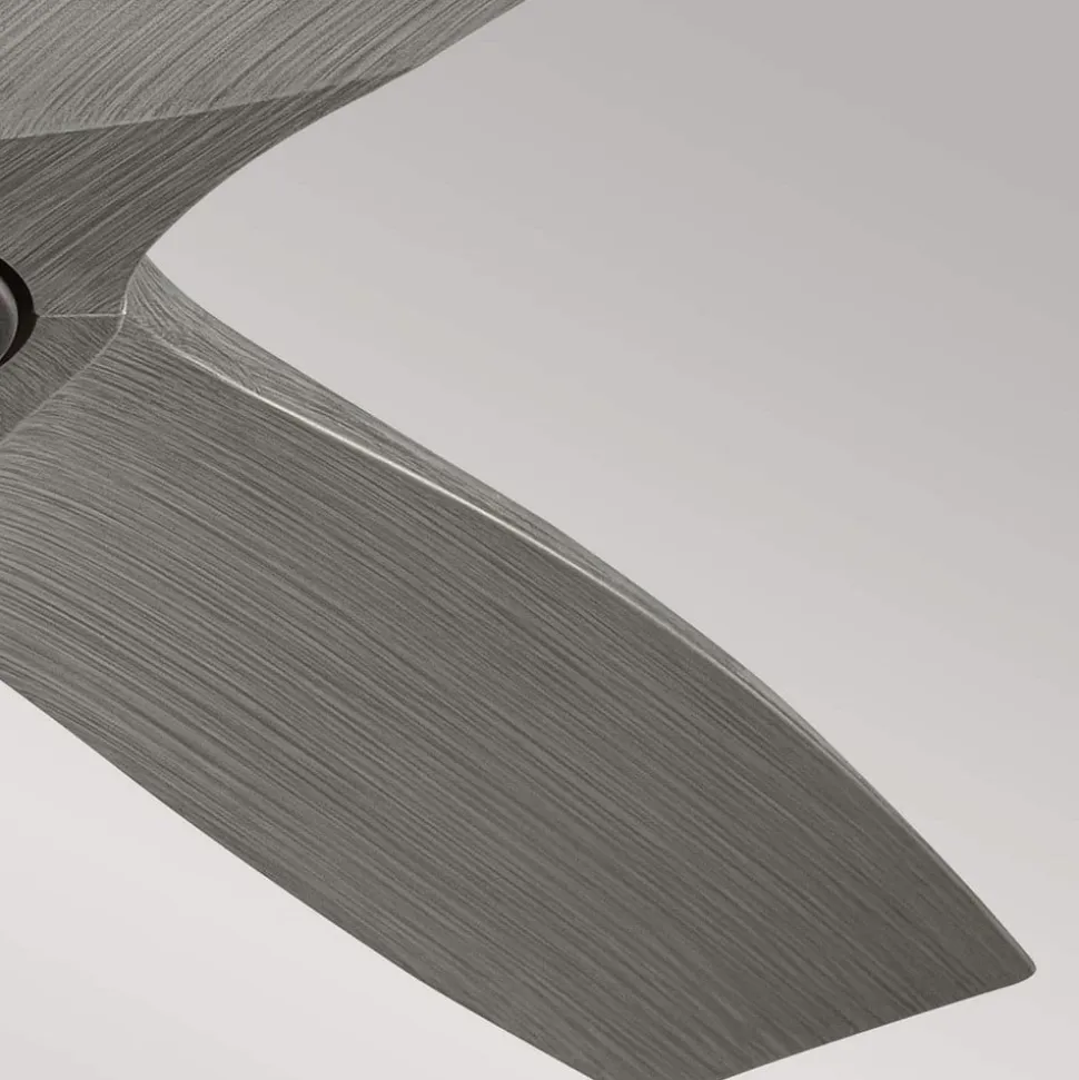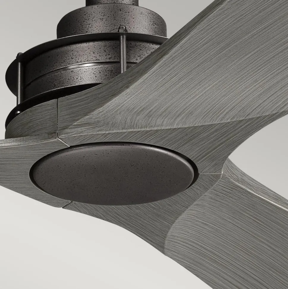 Loftsventilator Ried, trebladet, støjsvag, moderne Ried er en moderne loftsventilator med tre træblade og et hus af amboltjern, som også er velegnet til store rum og passer ind i den moderne industrielle stil takket være det enkle design med bladformede blade. Den er også velegnet til installation på nedhængte lofter og til taghældninger med en hældning på op til 22° og bør installeres i en højde på mindst 230 cm. Tekniske data – 3 hastigheder: min. 78 o/min, maks. 176 o/min – 65,3 W – AC-motor – støjniveau: 38,3 dB – cirkuleret luftstrøm: min. 67,37 m³/min, maks. 171,52 m³/min.