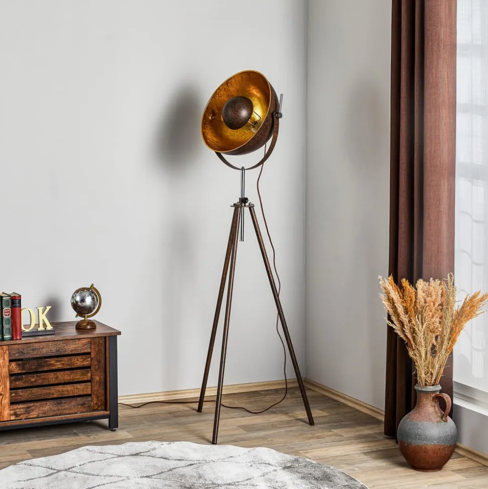 Stor, iøjnefaldende gulvlampe Xirena I i rustfarvet metal