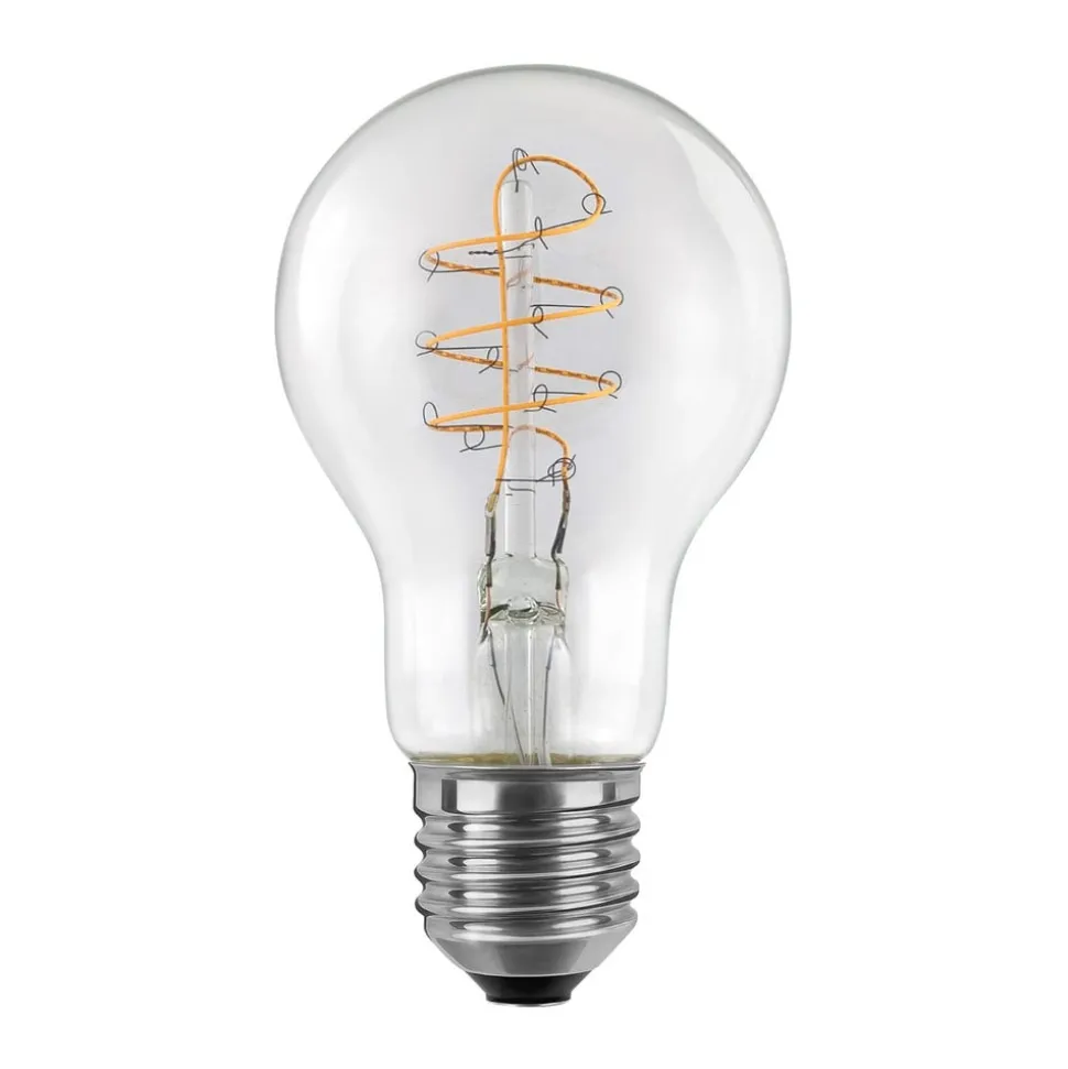LED-pæren i klassisk pæreform er et produkt fra ELEGANT Line fra SEGULA. Pærene i denne serie imponerer med deres videreudviklede, ultratynde og patenterede LED-filamentpære, der i stigende grad ligner en glødetråd. Den filigrane filamentpære snor sig elegant inde i det klare glas og gør pæren til det ideelle valg til brug i lamper uden skærm eller med gennemsigtige lampeskærme.