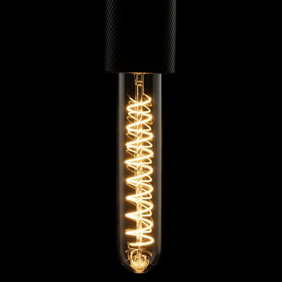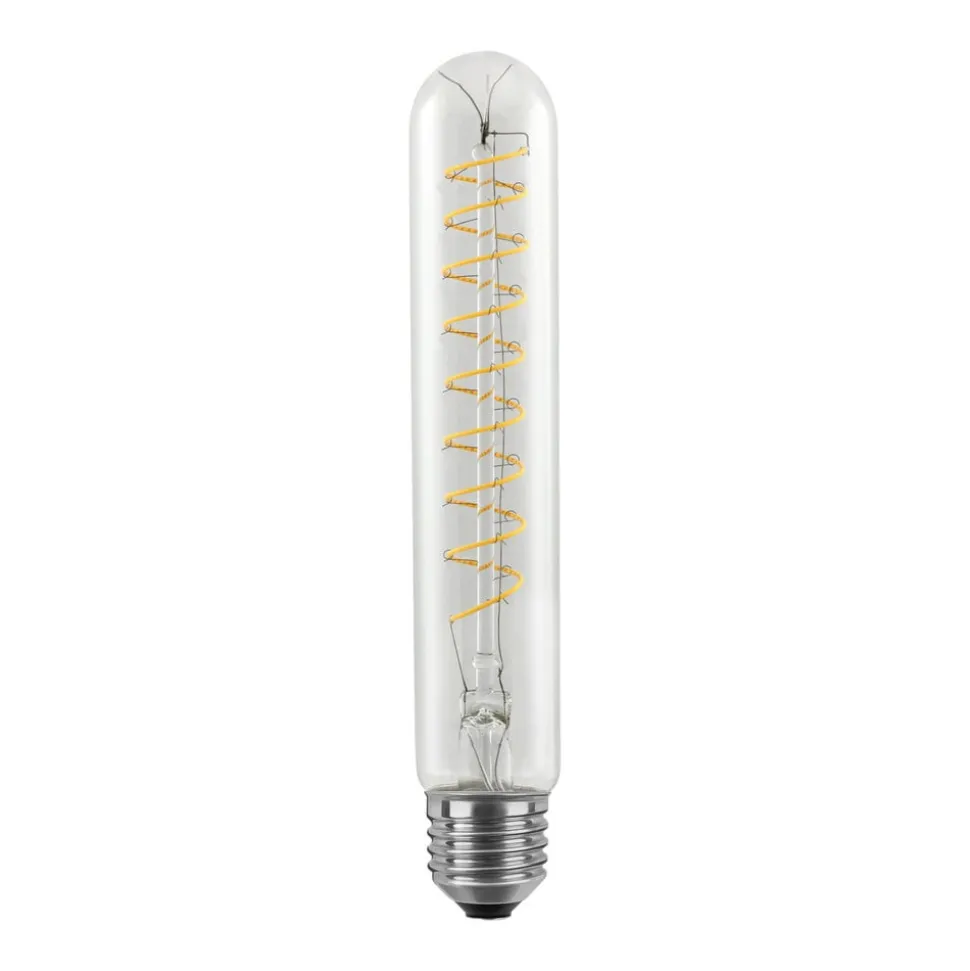 Dekorativ E27-rørlampe: SEGULA Soft Line LED Tube 200 Spiral, 4,6W, 2.700 K, Ra90 Den rørformede LED-lampe Soft Line LED Tube 200 Spiral fra SEGULA er lavet af glas og viser sin dekorative charme med sin betydelige længde på 19 cm. Dens aflange, spiralformede glødetråde er synlige gennem det klare glas, hvilket gør den ideel til brug i dekorative og designerarmaturer. Som en effektiv LED-lyskilde opnår denne E27-lampe en sammenlignelig værdi på 39 watt ved kun 4,6 watt sammenlignet med konventionelle glødelamper. Den producerer et behageligt varmt hvidt lys, der udsendes hele vejen rundt og har en meget god farvegengivelse (CRI>90), hvilket gør denne moderne rørlampe ideel til en bred vifte af åbent designede armaturer med en dekorativ karakter og også som en stilfuld tilføjelse til kunstnerisk designede designerarmaturer – dæmpbar