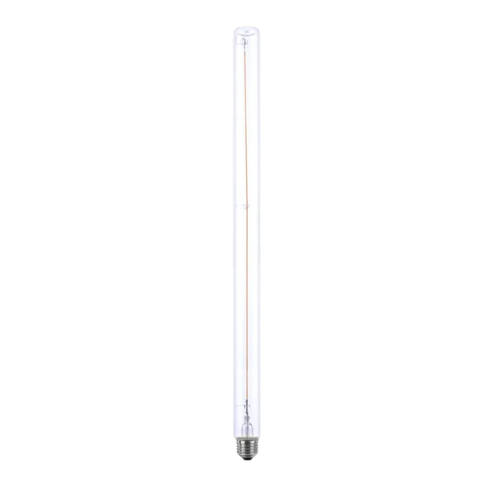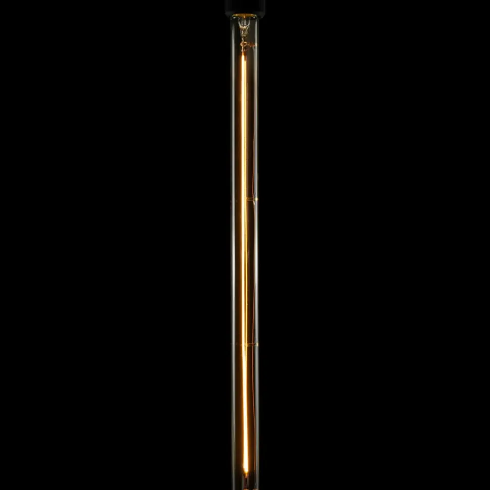 Dekorativ E27-rørlampe: SEGULA Soft Line LED Tube 500, 4,6W, 2.700 K, Ra90 Den rørformede LED-lampe Soft Line LED Tube 500 fra SEGULA er lavet af glas og afslører sin dekorative charme med sin imponerende længde på 55 cm. Dens aflange og lineære glødetråde er synlige gennem det klare glas, hvilket gør den ideel til brug i dekorative og designerarmaturer. Som en effektiv LED-lyskilde opnår denne E27-lampe en sammenlignelig værdi på 39 watt ved kun 4,6 watt sammenlignet med konventionelle glødelamper. Den producerer et behageligt varmt hvidt lys, der udsendes hele vejen rundt og har en meget god farvegengivelse (CRI>90), hvilket gør denne moderne rørlampe ideel til en bred vifte af åbent designede armaturer med en dekorativ karakter og også som en stilfuld tilføjelse til kunstnerisk designede designerarmaturer – dæmpbar