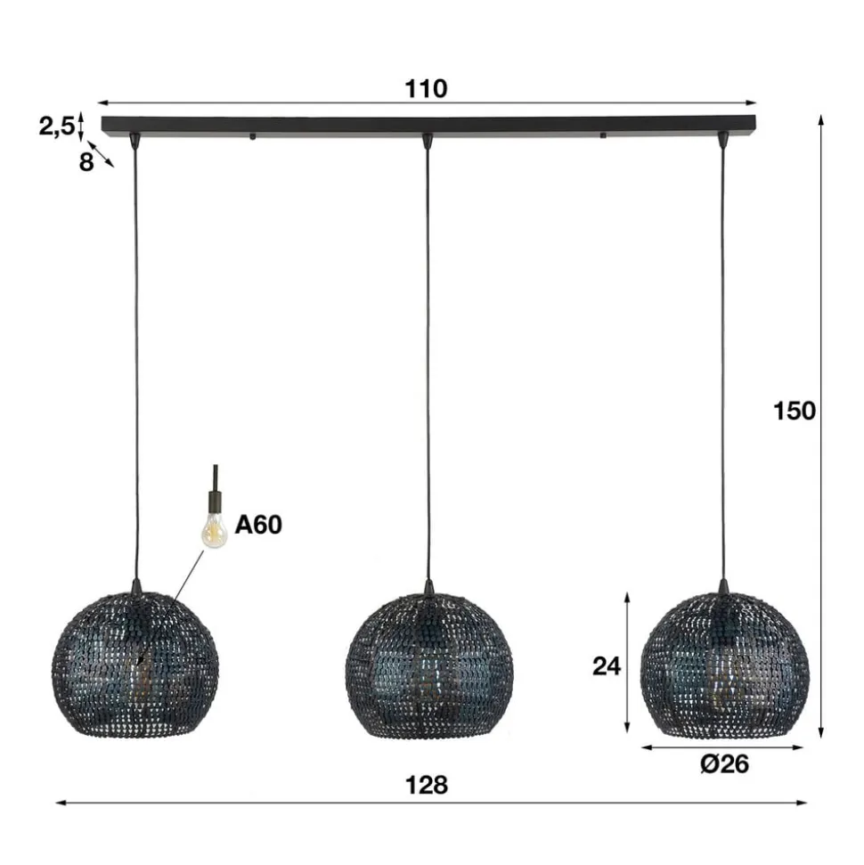Setengah hængelampe, 3 lyskilder, runde skærme