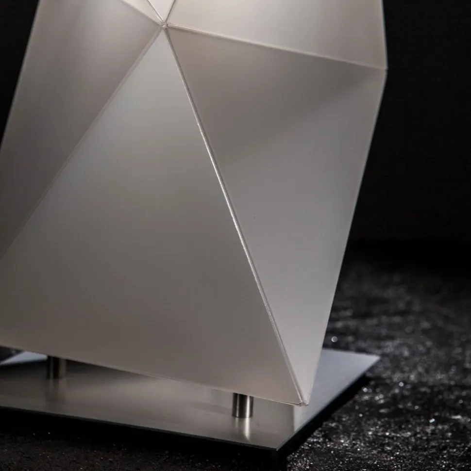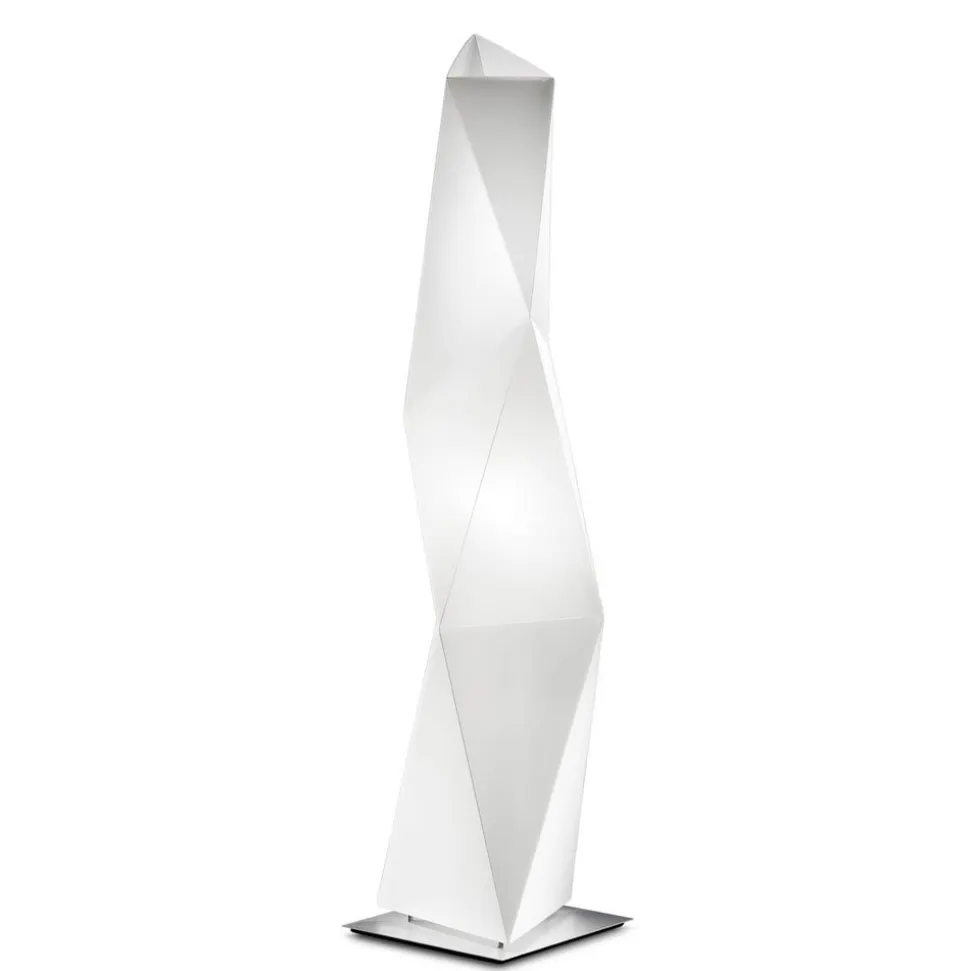 Gulvlampen Diamond, som er udarbejdet af designerne Ines Paolucci og Daniele Statera er en lampe med moderne elegance og et repræsentativt lysobjekt. Basen af aluminium suppleres af en skærm af Opalflex®. Dette alsidige materiale med lang levetid og et kantet design skaber et usædvanlig brydning af lyset når lampen tændes og skaber således et blødt lysskær.