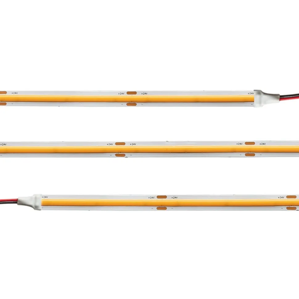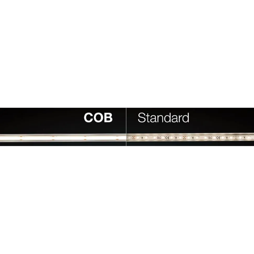 Når der er behov for en konstant lyslinje, er denne LED-strimmel med sine kontinuerlige og problemfrit kombinerede COB LED’er en fleksibel og kraftfuld løsning. Det kan også bruges i badeværelser og spaområder. Afkortningsmuligheder og 3M-klæbebånd gør installationen let.