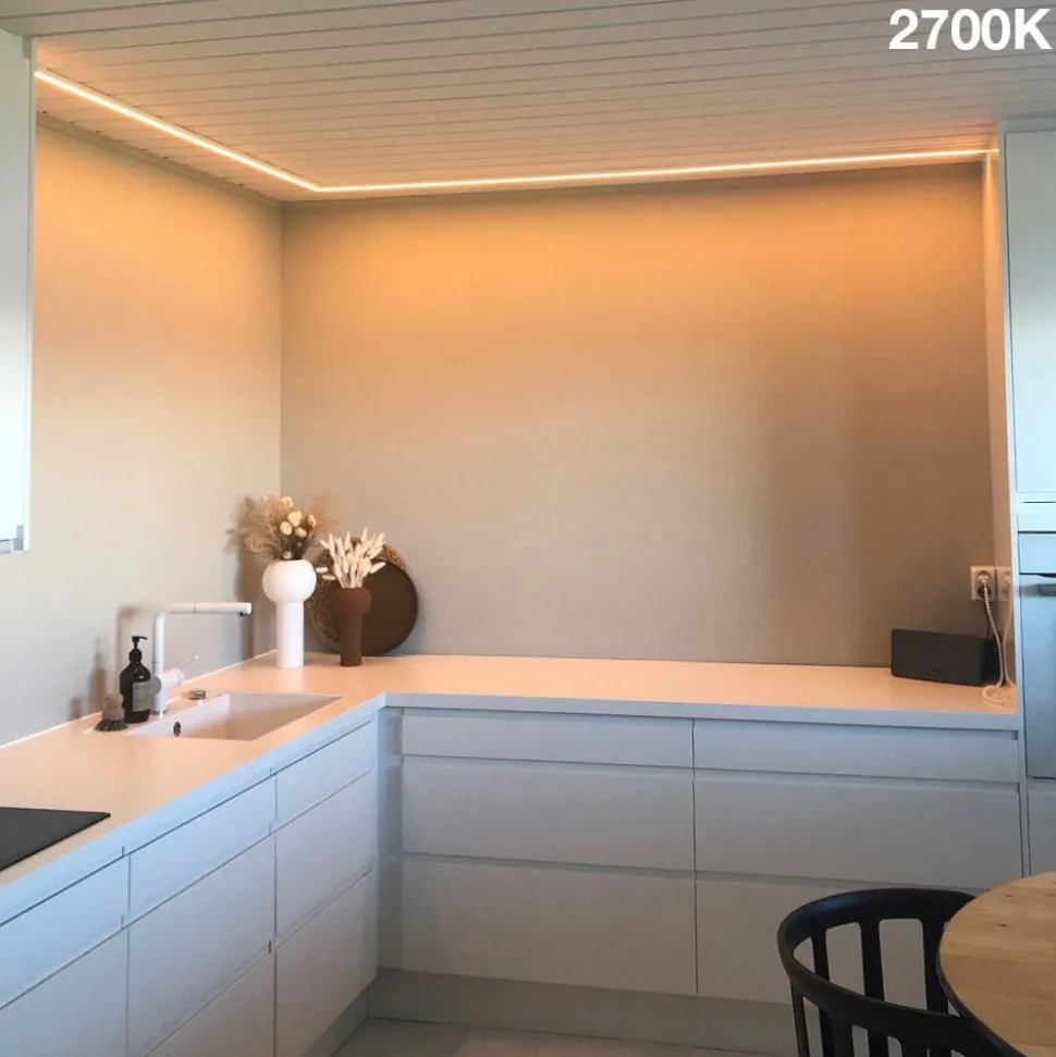 Denne LED-strimmel giver variabelt lys til stuer, lounges og endda badeværelser og spa-områder, der passer til omgivelserne og den aktuelle situation. 168 LED’er pr. meter giver en jævn lyslinje. Før installationen kan strimlen afkortes til den ønskede længde. For at sikre tilstrækkelig køling anbefales det at montere i en profil.