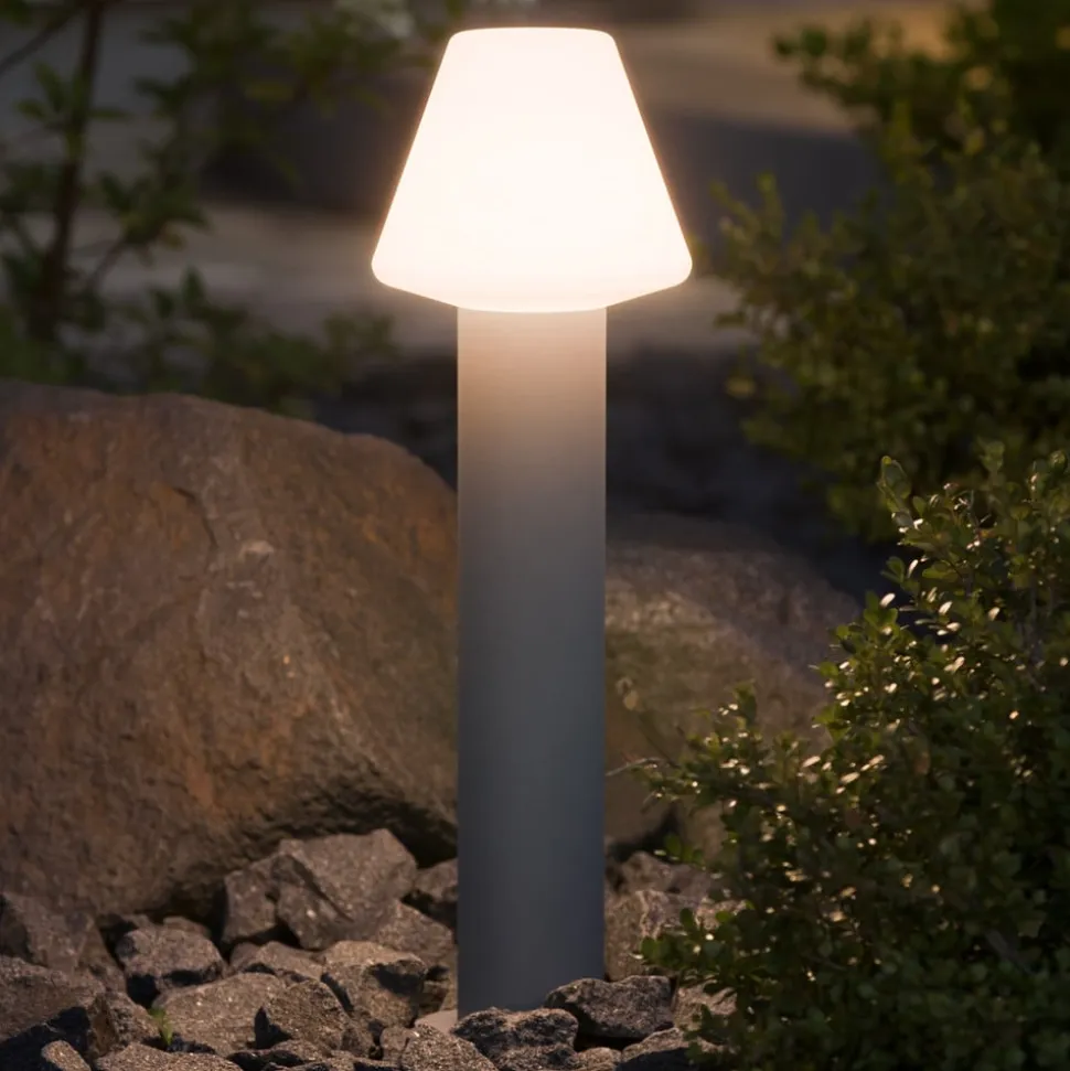 Sokkellampen Barletta kan anvendes som dekorativt lampe til terrassen eller altanen, samt vejbelysning på ejendommen, med en højde på 60 cm. Den dekorative sokkellampe er fremstillet i aluminium, og forsynet med en satineret plastskærm, der lader lyset stråle blændfrit og ensartet. Udendørsområdet oplyses meget økonomisk, da lampen er specielt egnet til brug af energibesparende pærer eller langtidsholdbare LED-pærer med E27-sokkel.