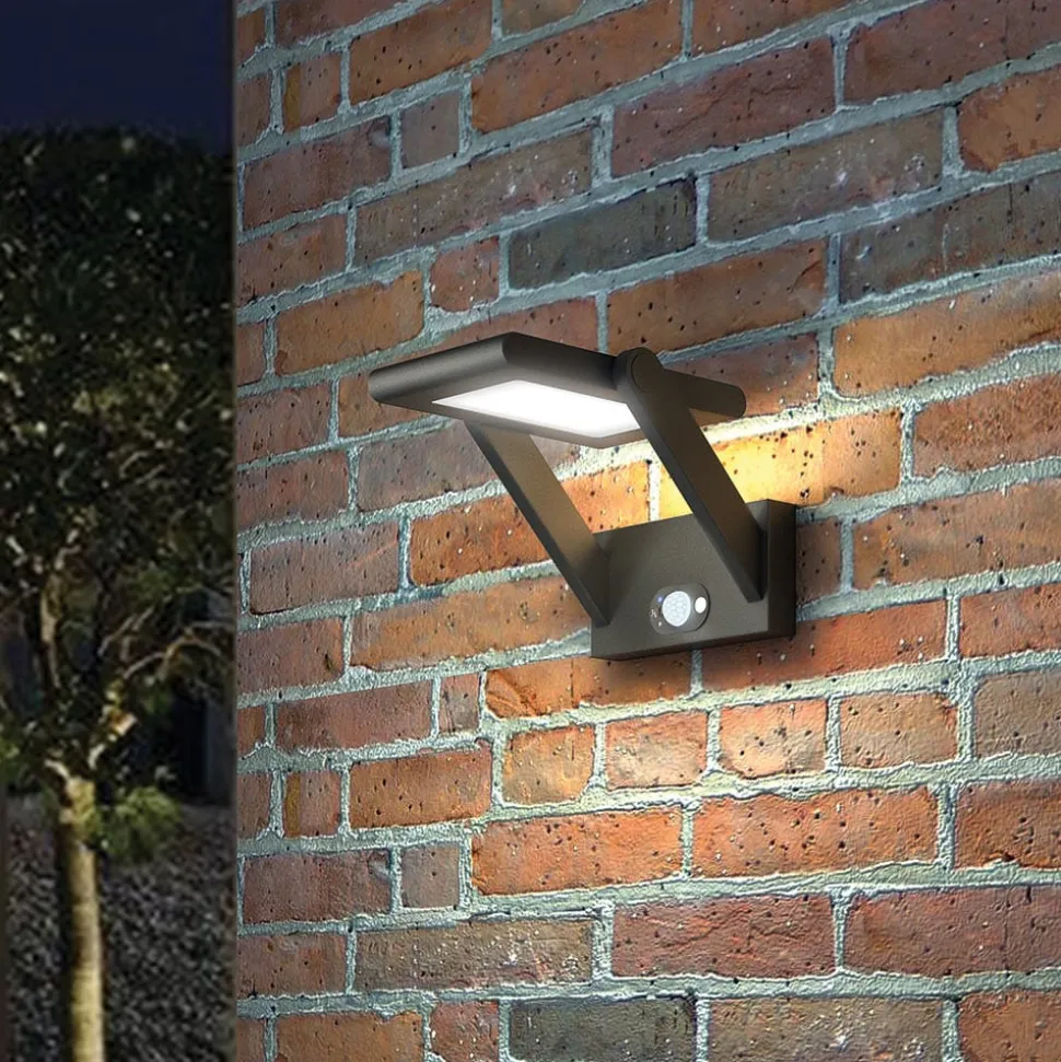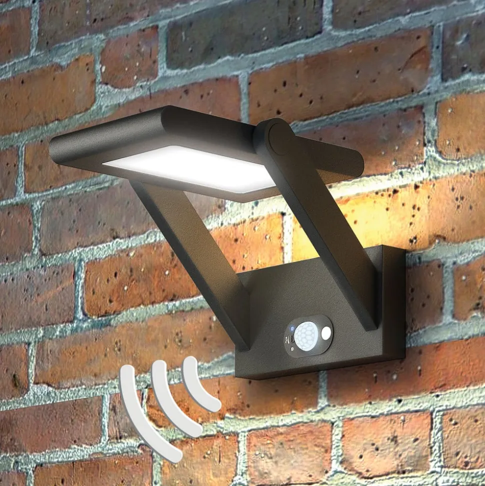 Imponerende LED-udendørsvæglampe Valerian med integreret solcellepanel og bevægelsesmelder