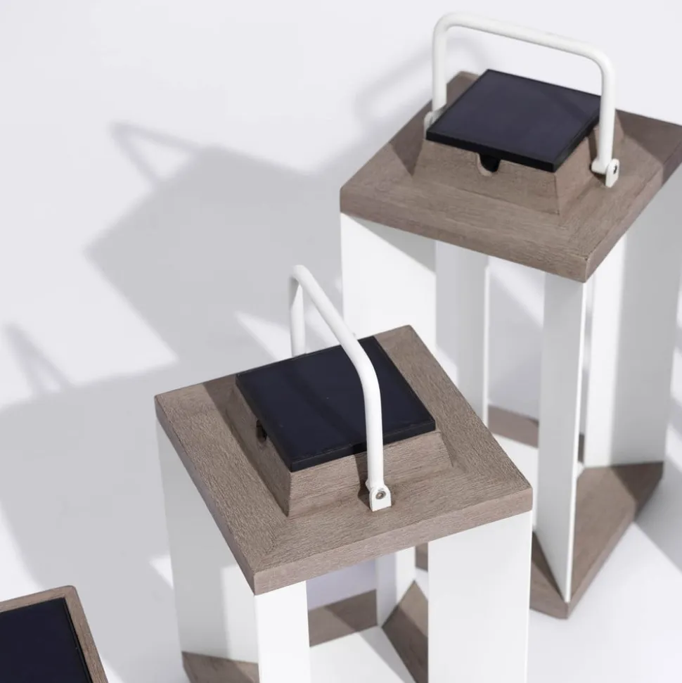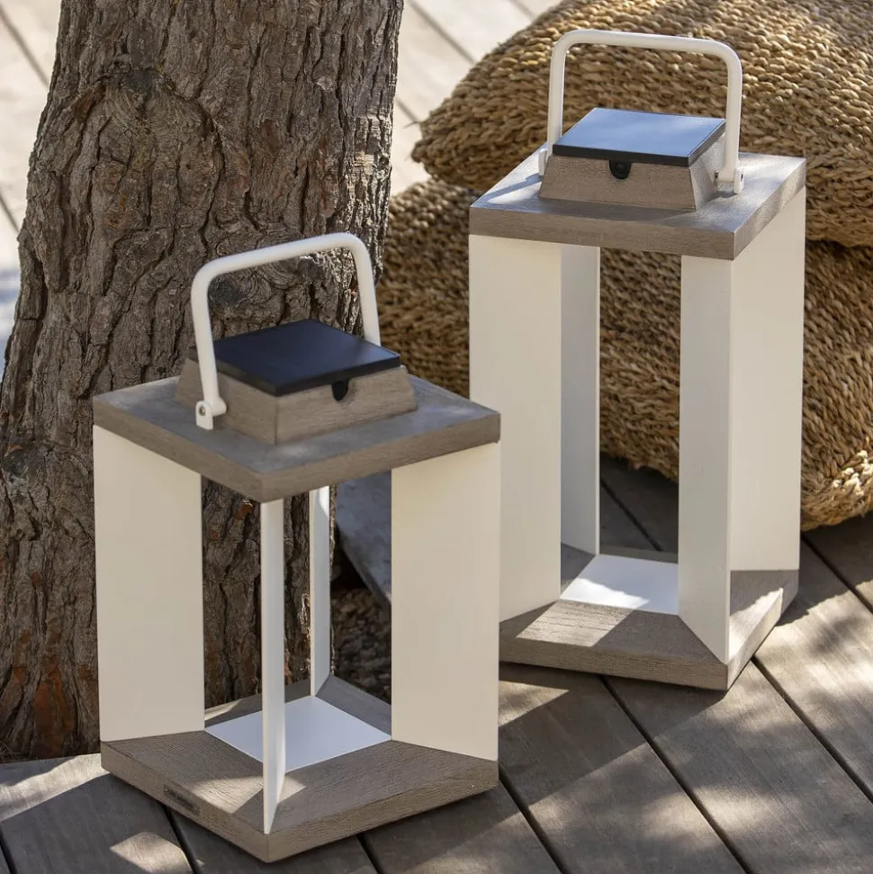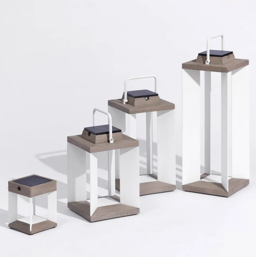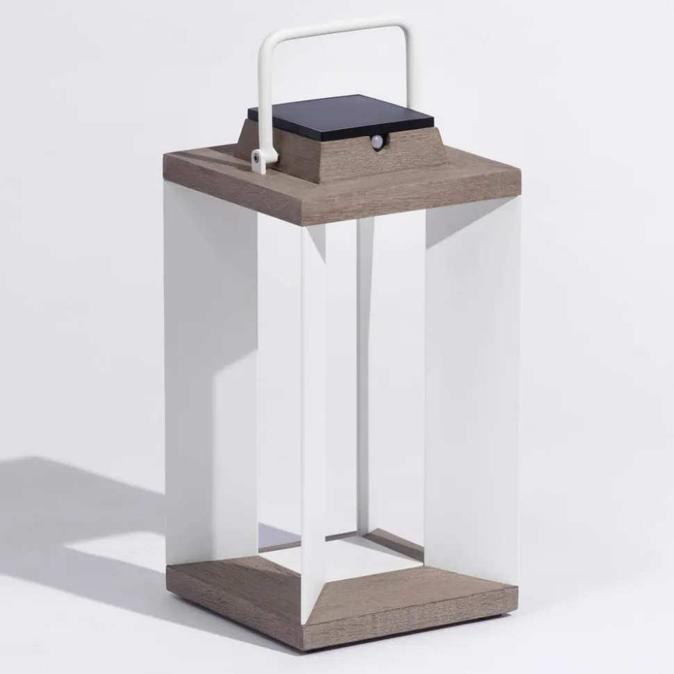 Moderne design LED-solcellelanterne Teckalu med bevægelsesdetektor Ud over sit moderne udseende har LED-solcellelanternen Teckalu mange funktioner, der gør den til et dekorativt og yderst funktionelt belysningstilbehør til ejendommen. Uanset om det er på terrassen, i forhaven, som lyskilde ved husets indgang eller foran campingvognen: Teckalu er både en energieffektiv og dekorativ lyskilde. Da der er installeret en bevægelsessensor, er lyset kun tændt, når der er brug for det. Teckalu kan lyse i op til 200 timer. Den kan genoplades enten via solcellemodulet eller via lysnettet ved hjælp af et USB-kabel. Fremstillet af ekstruderet, pulverlakeret aluminium og Duratek. Duratek: Teaktræet er ekstremt nemt at pleje. Det blev først børstet kraftigt for at opnå en struktureret finish. Efter et første lag vandtæt primer blev der påført fem lag grå finish. Denne proces beskytter træet mod vejret, UV-stråler og forskellige pletter som vin, kaffe eller olie. Den grå farve understreger det moderne, elegante look. Vedligeholdelse: Må ikke olieres. Rengøres med sæbevand – Kan dæmpes – Beskyttelsesklasse IP55 (støvtæt og beskyttet mod vandstråler)