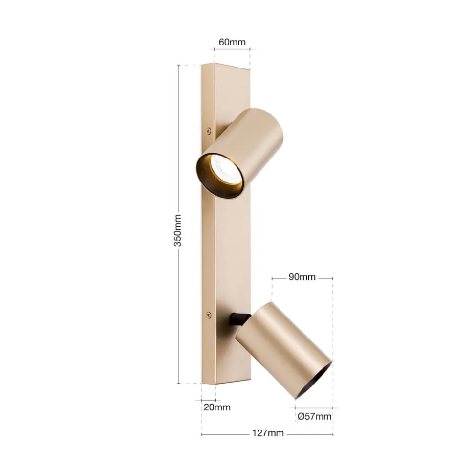 Spotlight Sean, 2 lyskilder, guldfarvet, metal, drejeligt monteret