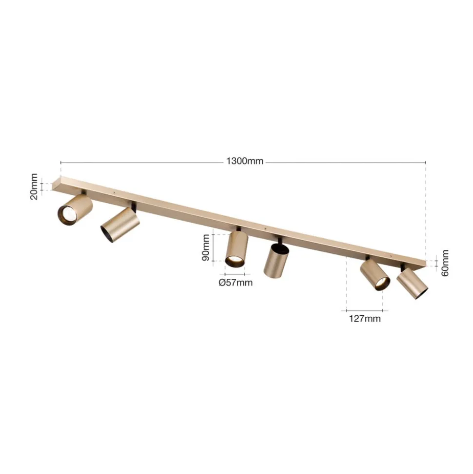 Spotlight Sean, 6 lyskilder, guldfarvet, metal, drejeligt monteret