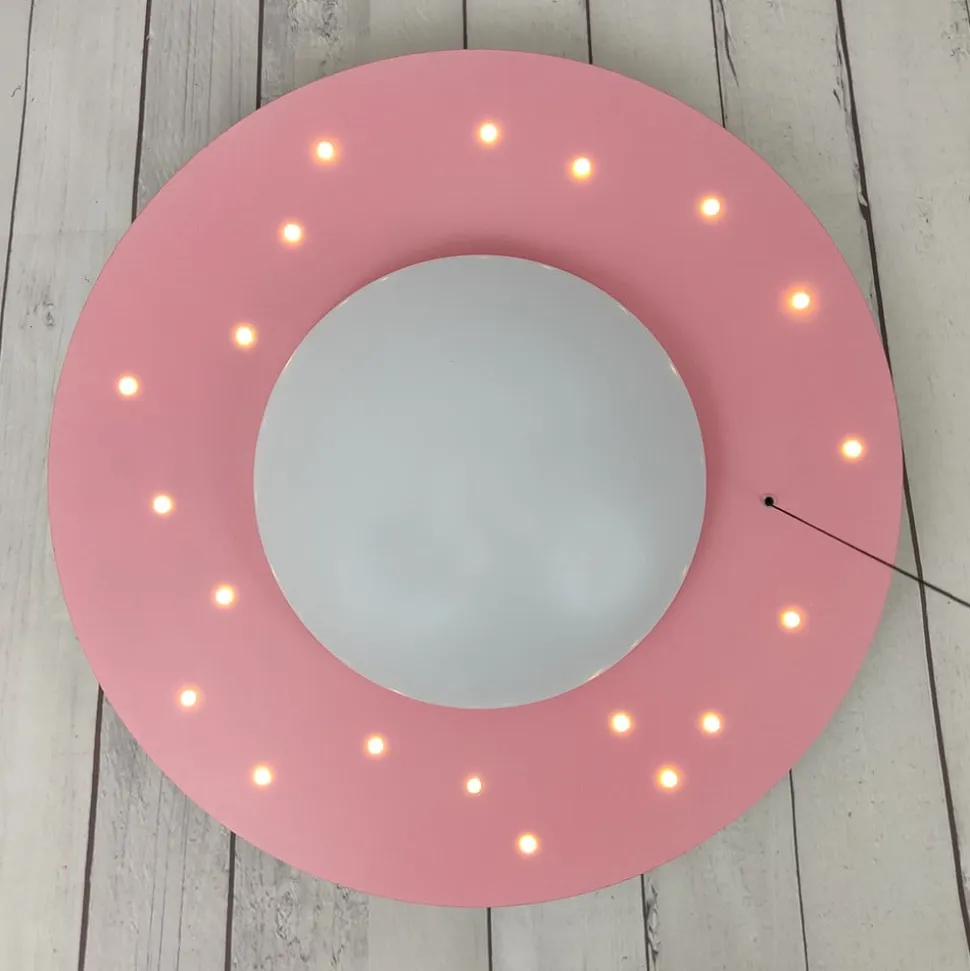 Med stjernehimmel: Starlight loftslampe med trækkontakt Starlight loftslampen er velegnet både som generel belysning i børneværelset og i sin funktion som stjernehimmel. 20 individuelle LED’er indlejret i loftspladen funkler som små stjerner. Hovedlyskilden er en E27-fatning (pære medfølger ikke, se tilbehør). Den kan deaktiveres med en trækkontakt, hvis du kun ønsker at lade stjernehimlen skinne. Den består af MDF-træ og plast og er lakeret i én farve.