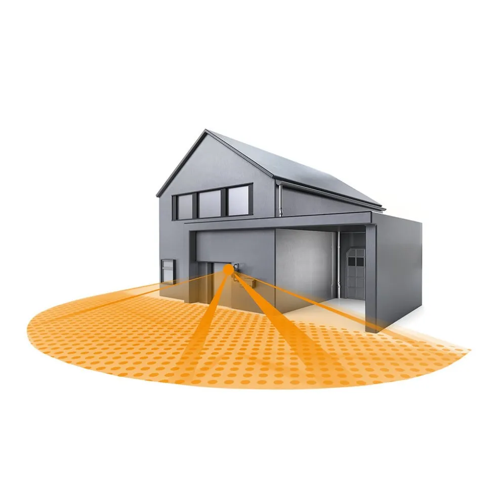 Flad bevægelsesdetektor IS 180-2Bevægelsesdetektoren IS 180-2 kan anvendes indendørs og udendørs på bygningsfacader i en højde på 1,8 til 4 meter. De integrerede detektorer giver mulighed for at dække 40 m² ved en afstand på fem meter eller 200 m² ved en afstand på 12 meter. Brugerne kan frit vælge mellem de to grundindstillinger. Desuden kan udløsningstærsklen indstilles til en omgivende lysstyrke på 2 til 2.000 lx.- Detektionsvinkel: 180 grader / 2 sensorer, med 90 graders åbningsvinkel.- Montering: Fri tilslutningsplads til nem og hurtig tilslutning- Monteringshøjde: 1,8 til 4 m- Skumringsindstilling: 2 til 2.000 lx