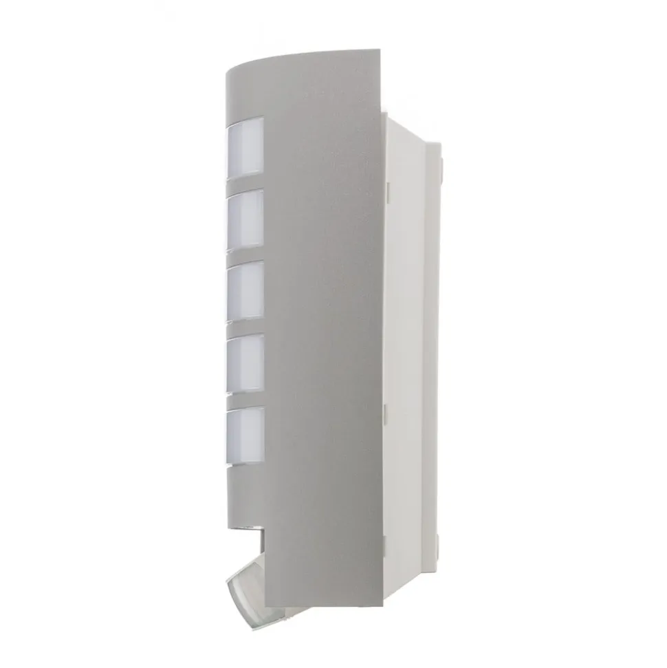 Væglampe L 12 S med bevægelsessensor til udendørs brug Moderne, kompakt udendørs væglampe med komfort, sikkerhed og energieffektivitet i “tysk kvalitet”. Denne udendørslampe med sensor har aluminiumsender af høj kvalitet, moderne design og sensorteknologi, der har bevist sit værd en million gange. Registreringsvinklen er 180° med en maksimal rækkevidde på 10 m. Sensorens store drejeområde (90°) og muligheden for at dække enkelte segmenter betyder, at registreringsområdet kan tilpasses optimalt til de omgivende forhold.