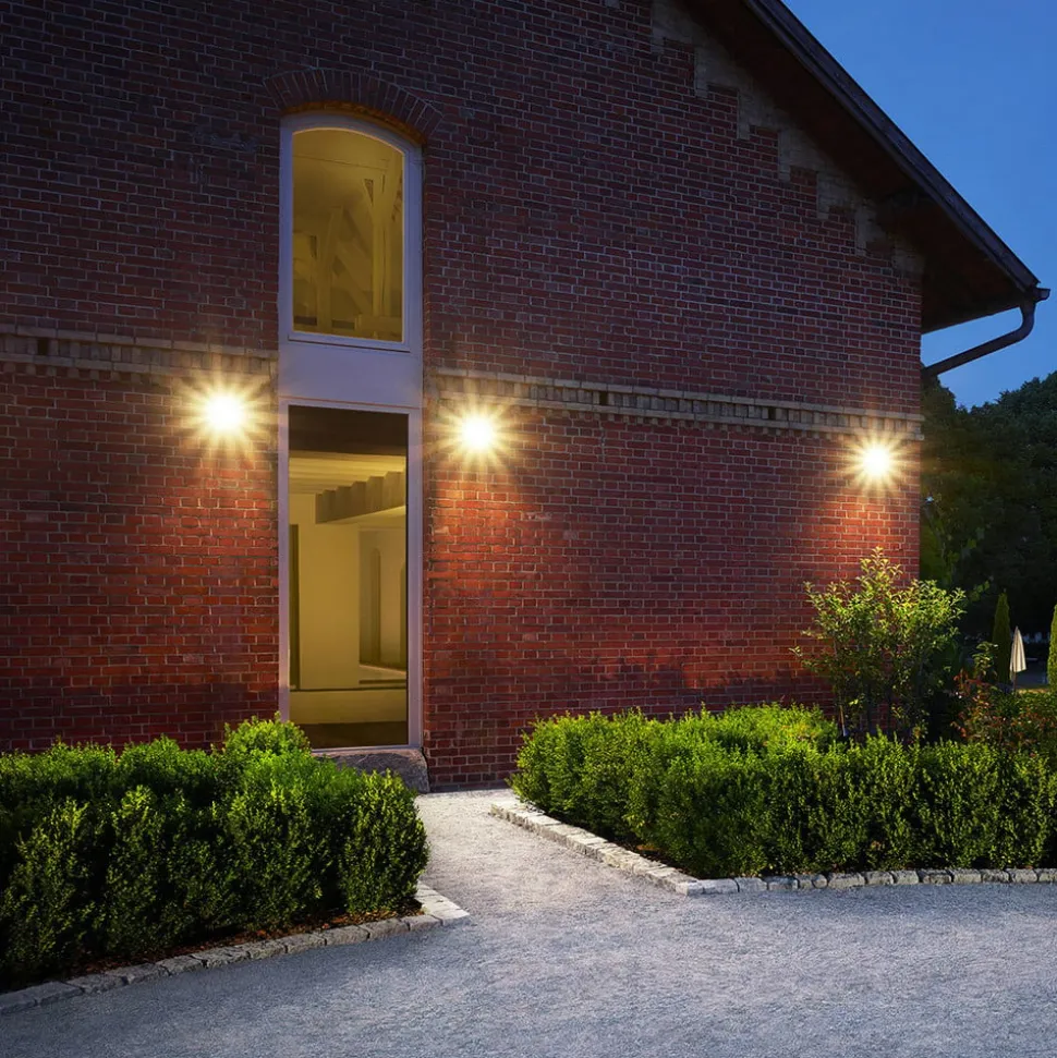 Vægprojektøren LS S 150 til udendørs brug har et design, der er reduceret til det væsentlige og fokuserer på funktionalitet. En bevægelsesdetektor med lang rækkevidde og et kraftigt LED-lys giver pålidelig belysning.