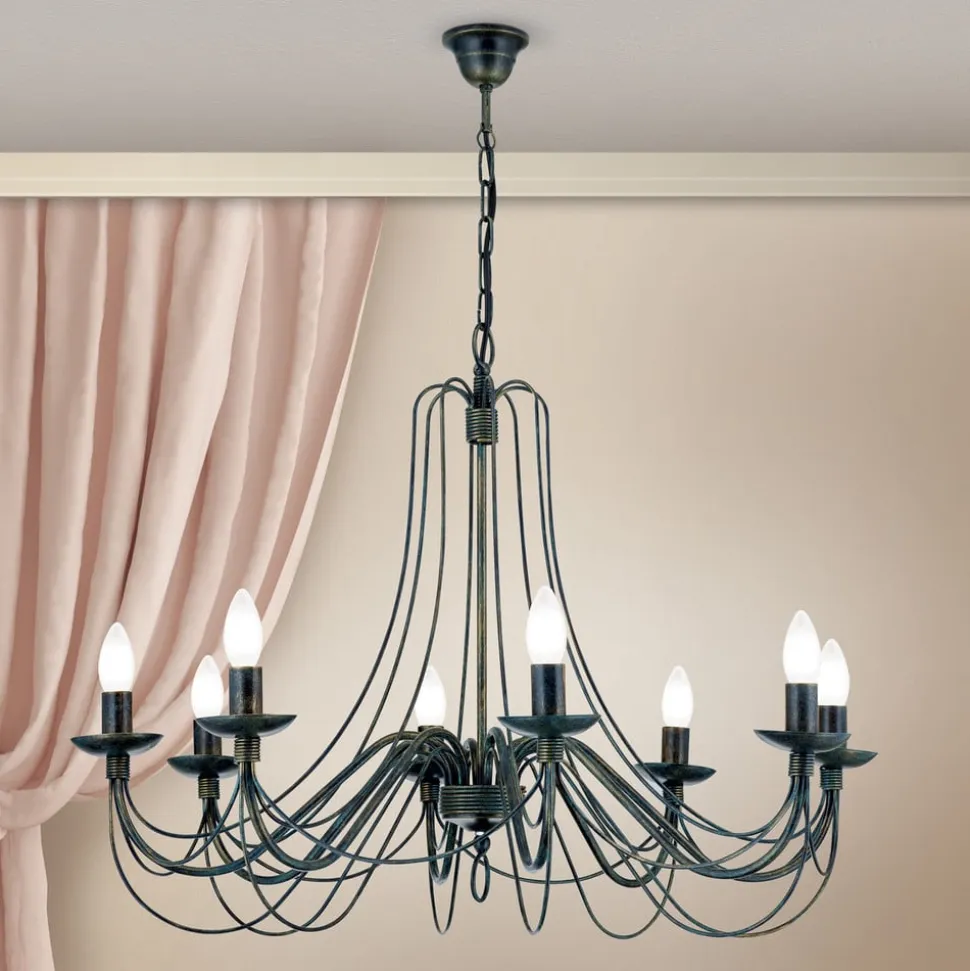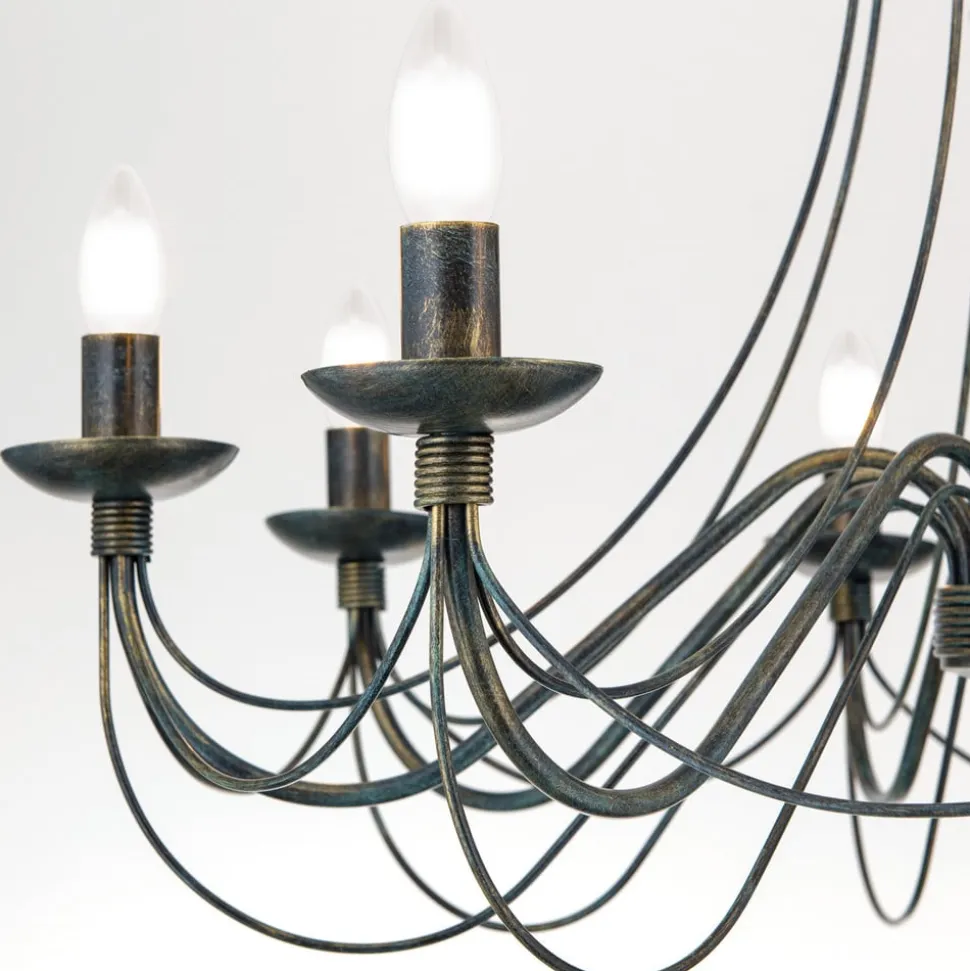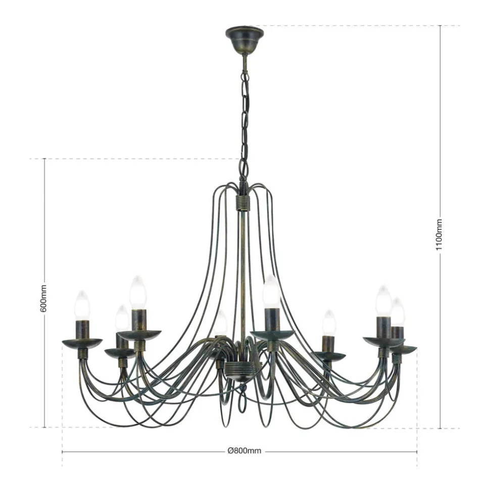 Et flot stykke smedekunst – otte lys der ser ud som om de danser på svævende reb samtidig med at de spreder stemningsfuld belysning. Med sin diameter på 80 cm og sine 8 lys er lampen også velegnet til store rum.