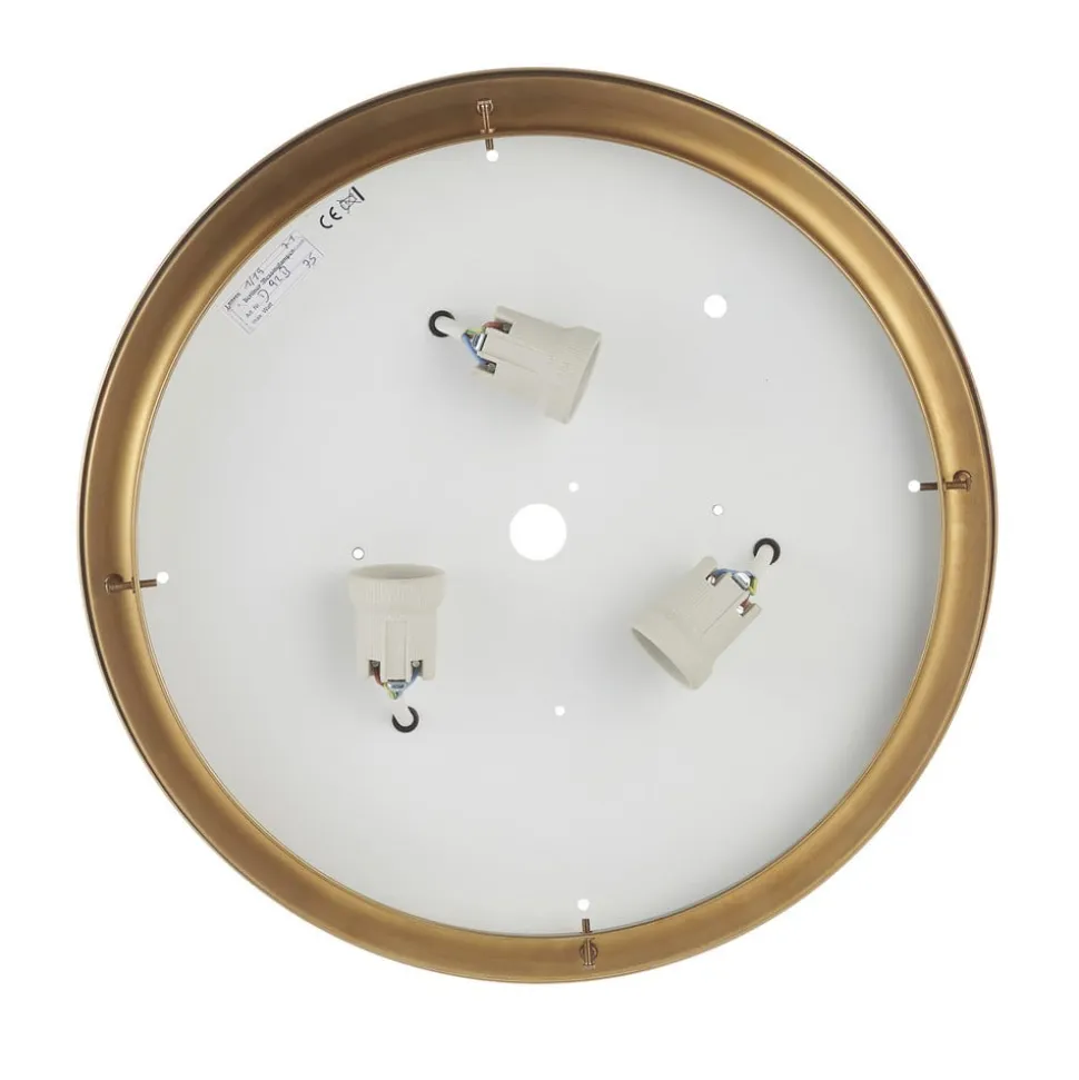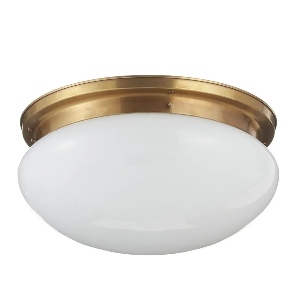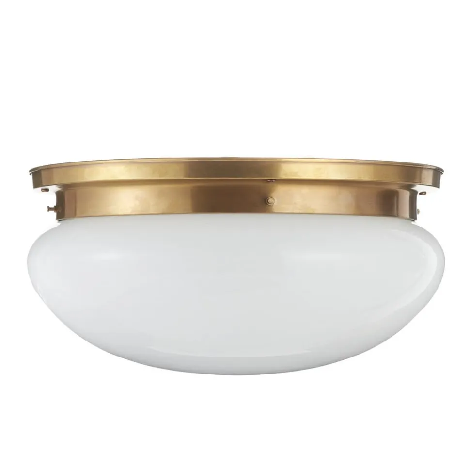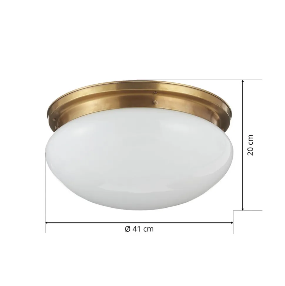Klassisk Harry-loftslampe med hvid glasskærmGamle modeller fra omkring 1900 har dannet grundlag for produktionen af Harry-loftslampen. Den består af en rund baldakin af overvejende ren messing, som har fået patina, og en hvid skærm af flerlagsglas, som er udstyret med en keramisk E27-fatning inde i skærmen. I klassisk indrettede stuer eller gange giver Harry-loftslampen et blændfrit og jævnt diffust lys gennem den hvide glasskærm. Da lampens messingoverflade ikke er lakeret, skal den rengøres med lidt forsigtighed. En tør klud er tilstrækkelig.