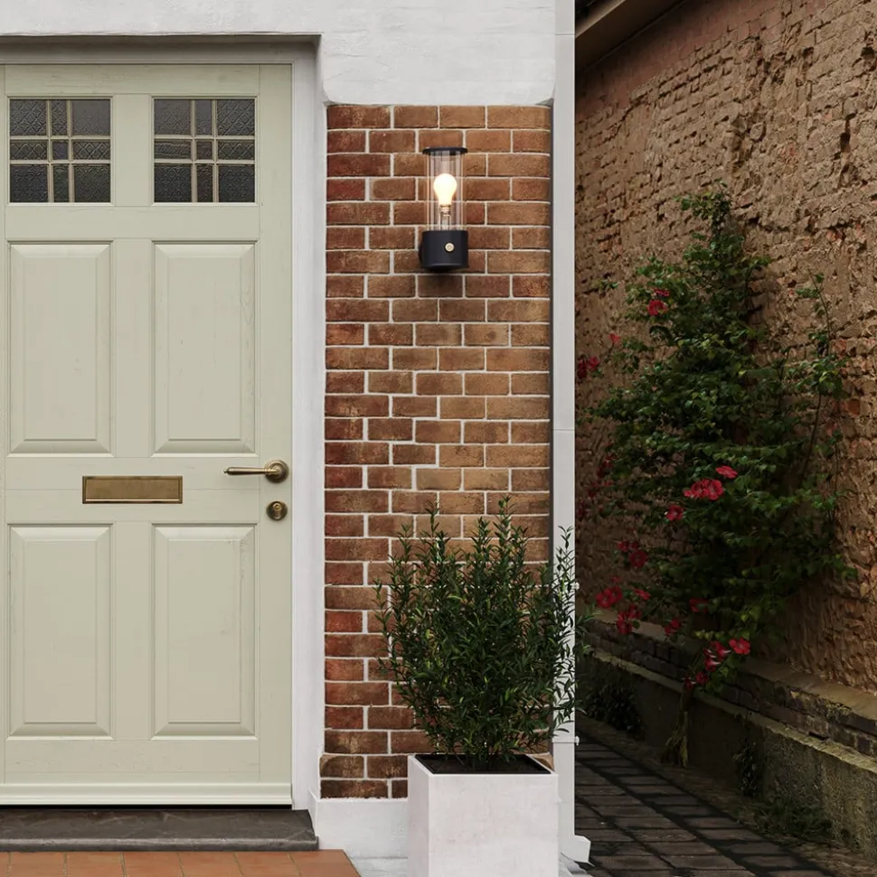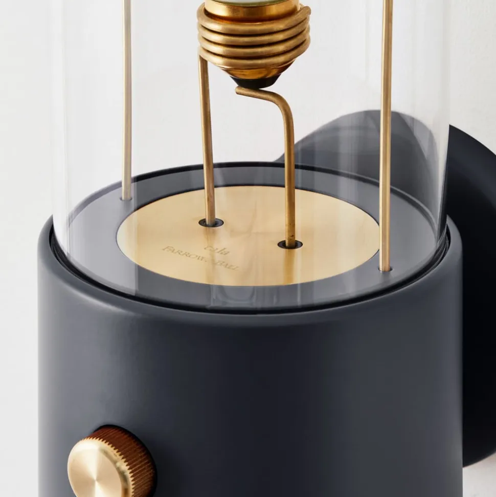 Muse-væglampe af aluminium og messing med LED-lyskilde og lysdæmper Muse-væglampen fra Tala er fremstillet af pulverlakeret aluminium med messingdetaljer og en cylinder af borosilikatglas. Den kombinerer udseendet og æstetikken fra en klassisk lanterne med ultramoderne teknologi og kan bruges både indendørs og udendørs takket være sin IP44-beskyttelsesgrad. En LED-lyskilde med opalhvidt glas og dim-to-warm-funktion er inkluderet i leveringsomfanget. Lyset kan dæmpes ved hjælp af drejedæmperen på armaturet og bliver varmere, når det dæmpes.