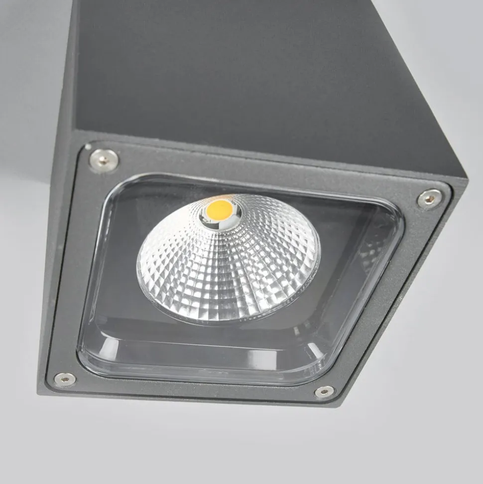 Hvis man anvender LED loftlampen Tanea til belysning af overdækkede områder udendørs, som for eksempel hovedindgange eller terrasser og balkoner, så har man en relativ enkel lyskilde med en diskret tilstedeværelse. Skærmen hhv. lampekroppen er terningformet, er fremstillet i trykstøbt aluminium, og kommer med en mørkegrå finish. Derudover garanterer LED teknologien at strømforbruget ligger på et lavt niveau.