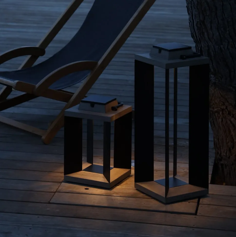 Udstyret med bevægelsesdetektor: Teckalu LED-solcellelanterne fremstillet af Duratek og ekstruderet og pulverlakeret aluminium Den moderne lanterneform, de neutrale farver og de to opladningsmuligheder gør den bærbare LED-solcellelanterne Teckalu til et uundværligt tilbehør til udendørs belysning. Teckalu kan hurtigt sættes op overalt, f.eks. på altanen, terrassen eller ved siden af indgangen til huset. Når solen skinner, oplades batteriet og frigiver energien til LED-lyskilden om natten, så Teckalu oplyser omgivelserne med varmt, hvidt lys. Hvis sollyset ikke er stærkt nok – f.eks. om vinteren – kan batteriet også oplades via et USB-kabel fra lysnettet. Teaktræet er ekstremt nemt at pleje. Det blev først børstet kraftigt for at opnå en struktureret finish. Efter et første lag vandtæt primer blev der påført fem lag grå finish. Denne proces beskytter træet mod vejret, UV-stråler og forskellige pletter som vin, kaffe eller olie. Den grå farve understreger det moderne, smarte look. Vedligeholdelse: Må ikke olieres. Rengøres med sæbevand – dæmpbar
