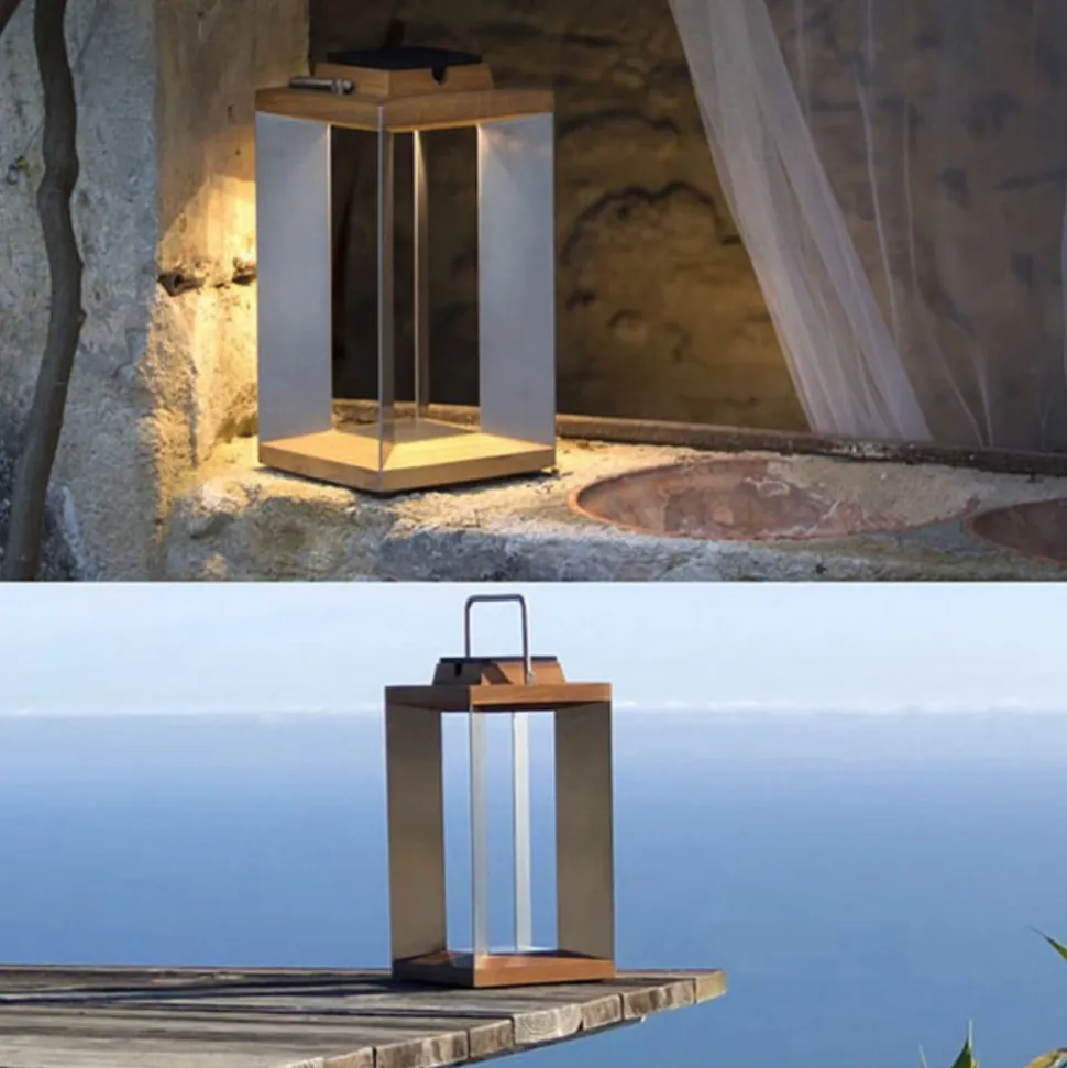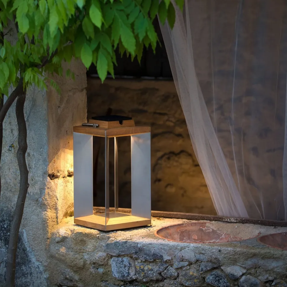 Teckinox LED solcelle-lanterne: genopladelig via solpanel eller USB-kabel Teckinox LED solcelle-lanterne har et moderne design med et naturligt flair: den er lavet af rustfrit stål og naturligt teaktræ og har et tidløst elegant look takket være sin lineære form. Den er energibesparende og gratis og kan oplades via det integrerede solcellemodul, når solen skinner. I de køligere måneder af året, hvor solen ikke skinner så ofte, kan den oplades via et USB-kabel og lysnettet. Den mobile lanterne er velegnet til mange belysningssituationer: f.eks. på terrassen, på trappen, ved siden af hoveddøren eller på altanbordet – Integreret bevægelsessensor – Dæmpbar – Lysvarighed: 5-200 timer