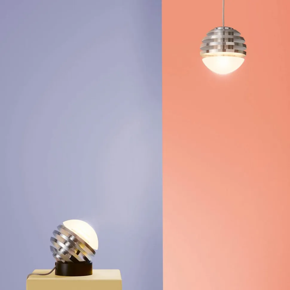 Bulo Micro sfærisk LED-pendel med touch-dæmper Oliver Niewiadomski designede denne ekstravagante pendel for belysningsproducenten Tecnolumen for at kombinere førsteklasses design med den nyeste teknologi. Bulo Micro-armaturet er en del af “Bulo”-serien, hvis udseende er kendetegnet ved en snoet aluminiumskrop, mens lyset kan glide gennem den satinbelagte lampeskærm. Det er kendetegnet ved brugen af materialer af høj kvalitet i kombination med den nyeste LED-teknologi. Den ønskede farveintensitet kan vælges ved hjælp af touchdæmperen, der er integreret i lampeskærmen.