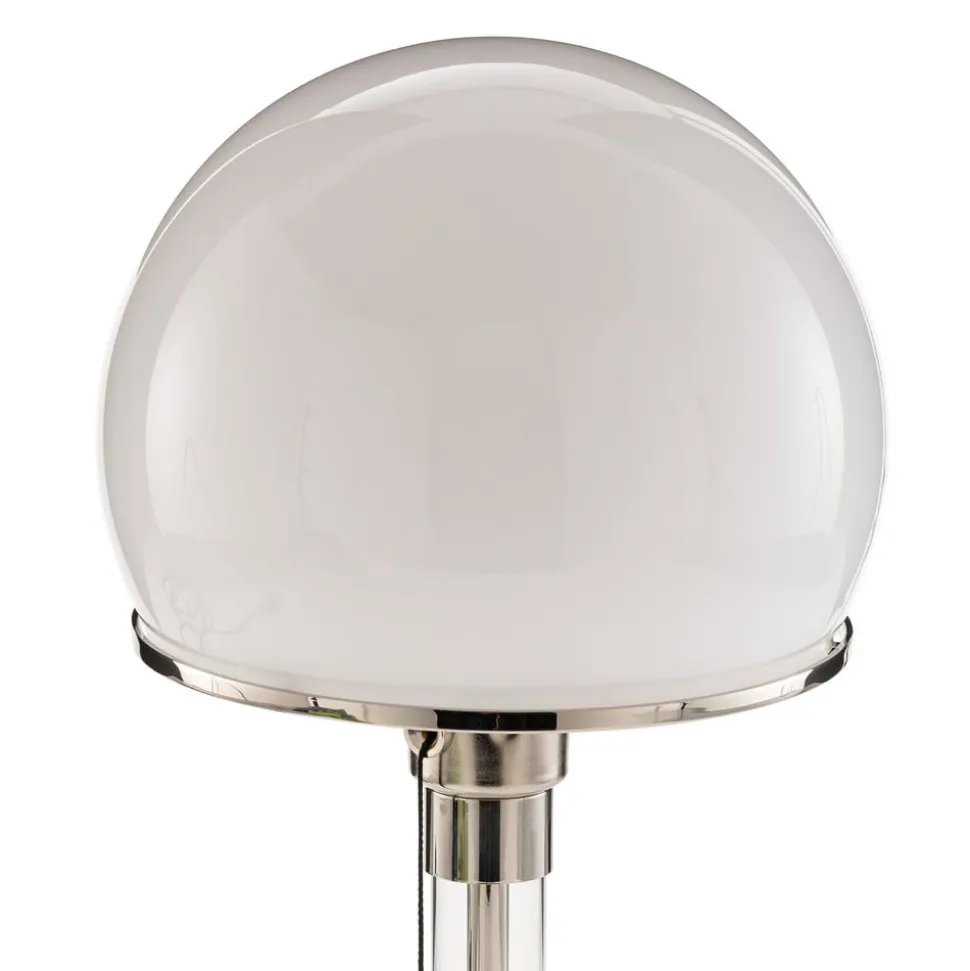 Denne bordlampe forener tysk historie og moderne håndværk: Resultatet er et ægte pragtstykke. Denne relancering er den eneste licenserede i hele verden. Ægtheden kan klart identificeres ved hjælp af en række kendetegn: Efter udkastet fra Bauhaus-designeren professor Wilhelm Wagenfeld blev denne bordlampe udviklet med en mundblæst skærm af opalglas og en forniklet metalkant med en diameter på 18 cm og en glasfod. Den tændes og slukkes med den sorte træksnor. De forniklede små kugler, der sidder på enden af snoren, er præcis lige som Wilhelm Wagenfeld opfandt dem. Fatningen er udviklet nøjagtigt afstemt til denne lampe og har den karakteristiske tud. Metalstanderen er omgivet af glas, som er direkte baseret på Wagenfelds oprindelige tegninger. Lampens overflade er forniklet, lige som det er tilfældet på Wagenfelds design fra 1924. Med tiden dannes en typisk patina. Den elektriske strømledning består af et sort stofkabel. Bordlampen udsender et flatterende lys og kan betjenes med LED- og energisparepærer. Alle lamper i denne serie er nummereret fortløbende og forsynet med stemplet for virksomheden Tecnolumen, hvilket yderligere verificerer ægtheden.
