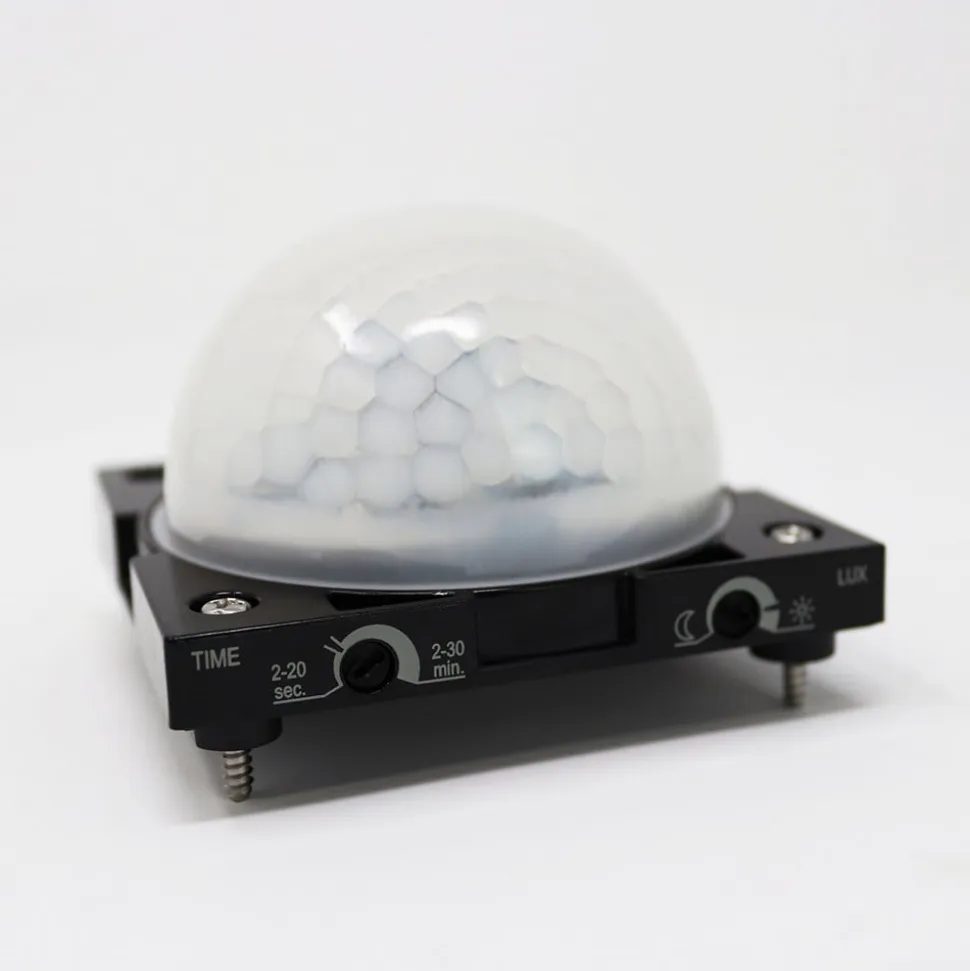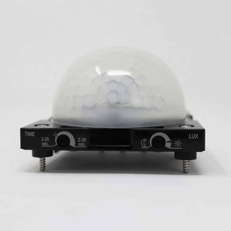 Robust bevægelsesdetektor (PIR) theLuxa R180 til udendørs brug Bevægelsesdetektoren theLuxa R180 har et robust husdesign og er beskyttet mod manipulation. Den skjulte placering af betjeningselementerne under det sikre frontdæksel bidrager også til dette. Sensoren placeres på væggen i en højde af 2,5 meter. Den kan også indbygges. Funktionerne er forudindstillede, så der ikke er noget i vejen for, at de kan tages i brug med det samme. Detekteringsområdet kan begrænses ved hjælp af den medfølgende dækclips. Inkluderer dummy-terminal til beskyttelsesjordleder – Forudindstillet – Detekteringsvinkel: 180° – Rækkevidde: maks. 12 m – Lysstyrkeindstillingsområde: 2 til 200 lux – Lysforsinkelsestid: 2 s til 30 min – Nulgennemgangskobling til relævenlig omskiftning og høje lampebelastninger – Gløde-/halogenlampebelastning: 2.300 W – Lysstofrørsbelastning (VVG) ikke parallelkompenseret: 500 VA – Lysstofrørsbelastning (VVG) parallelkompenseret: 500 W 60 µF – Lysstofrørsbelastning (VVG) seriekompenseret: 500 VA – Lysstofrørsbelastning (EVG): 500 W – Kompaktlysstofrør: 500 W – LED-lampe under 2 W: 50 W – LED-lampe over 2 W: 500 W – Omskiftningskapacitet: 10 A (ved 230 V AC, cos φ = 1)
