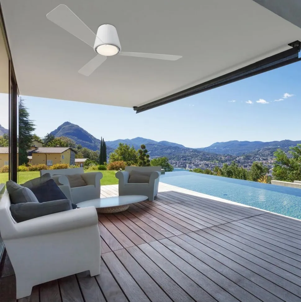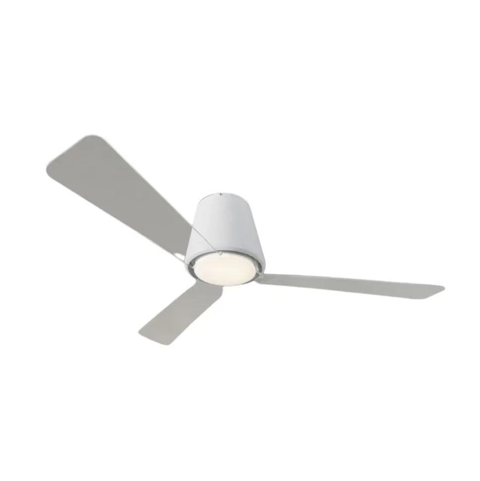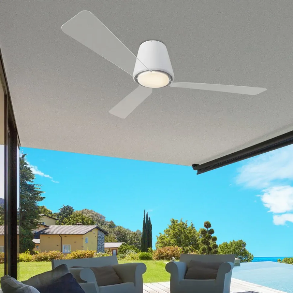 Garbí er en loftventilator, der ikke kun imponerer med sit moderne design, men også med sin funktionalitet. De tre rotorblade er formet af klart akryl og er næsten usynlige på loftet. I kombination med det hvide stel virker dette særligt harmonisk og moderne.